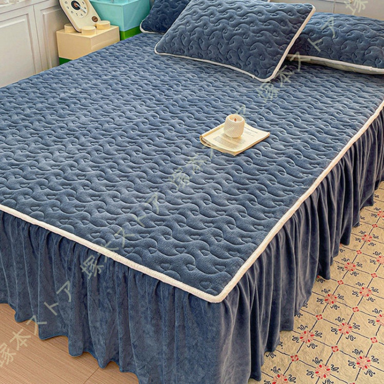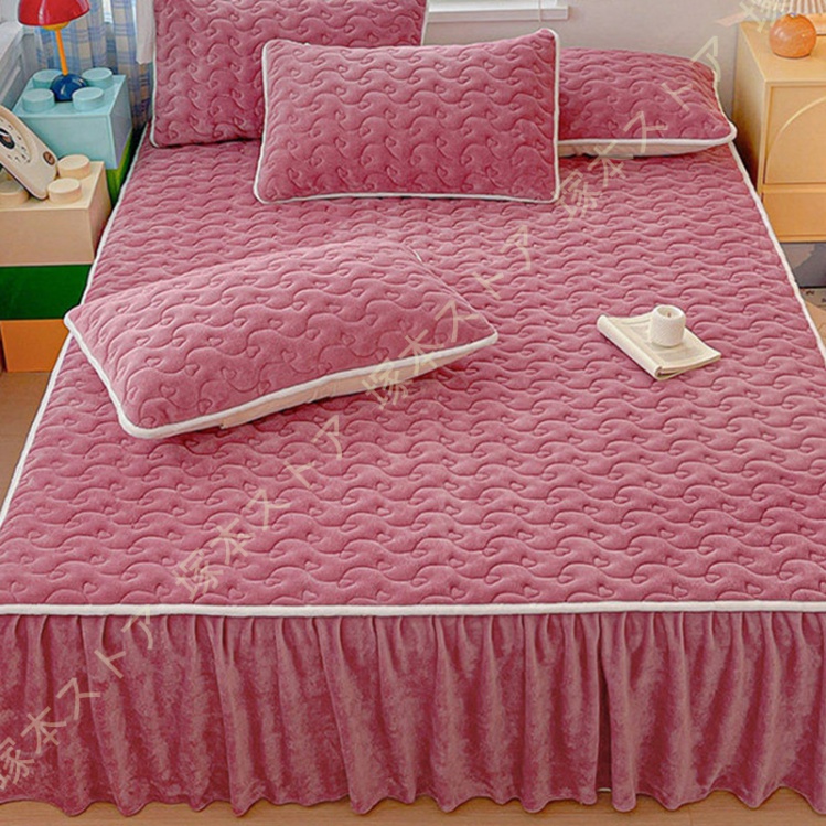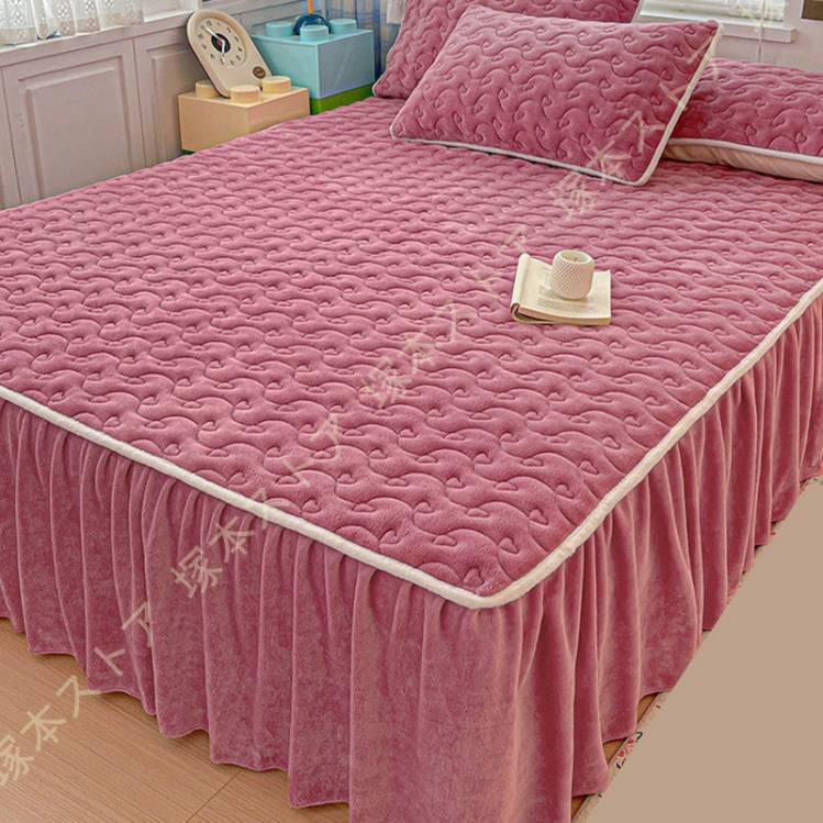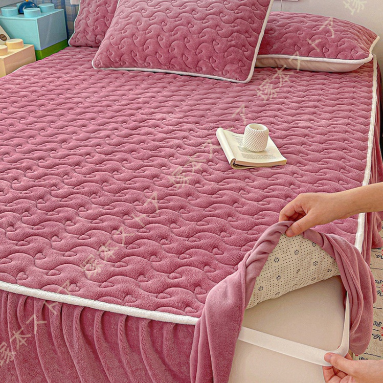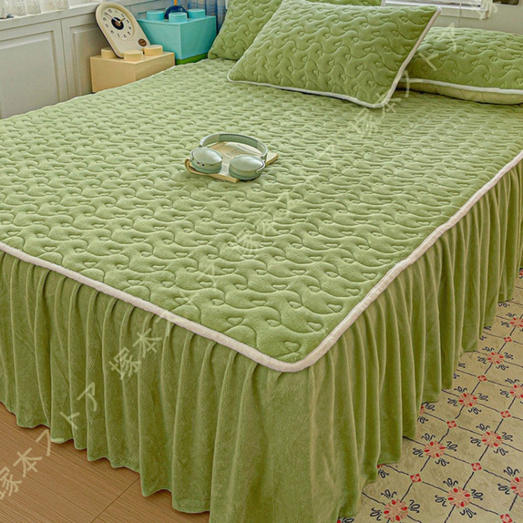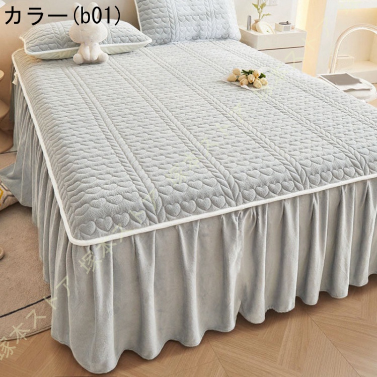 ベッドスカート ベッドカバー フランネル北欧 おしゃれ 上品 四季通用 柔らかい 無地 北欧風 秋冬用 ベッドスプレッド 厚手 敷きパッド 姫系 柔らかい