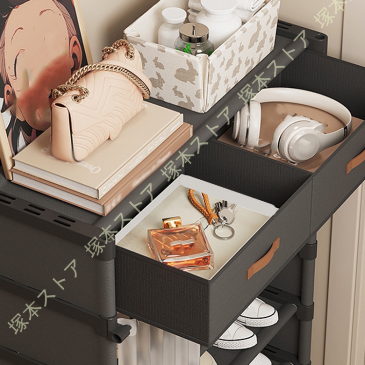 【頑丈で安定感が高い】より太く、より耐久性のあるスチールパイプが設置するので、防錆、優れた耐荷重、長く使っても変形しにくい、安定感に優れるアイテムです!棚板部分に強化した不織布を採用、優れた耐水性で!
