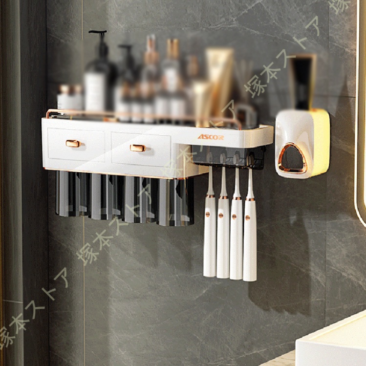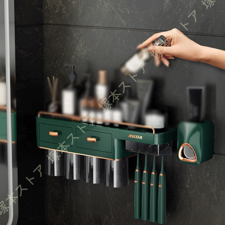 ◆サイズ:2本のコップスタンド=23.8*11*18cm、3本のコップスタンド=32*11*18cm、4本のコップスタンド=41.5*11*18cm。歯磨き粉ディスペンサー=7.5*7*10.5cm、歯磨きコップ=330ml。壁掛け式 省スペースでバスルームにすっきり収納できます。製品図を見てください。歯ブラシや歯磨き粉などの物は含めておりません。ご了承ください。