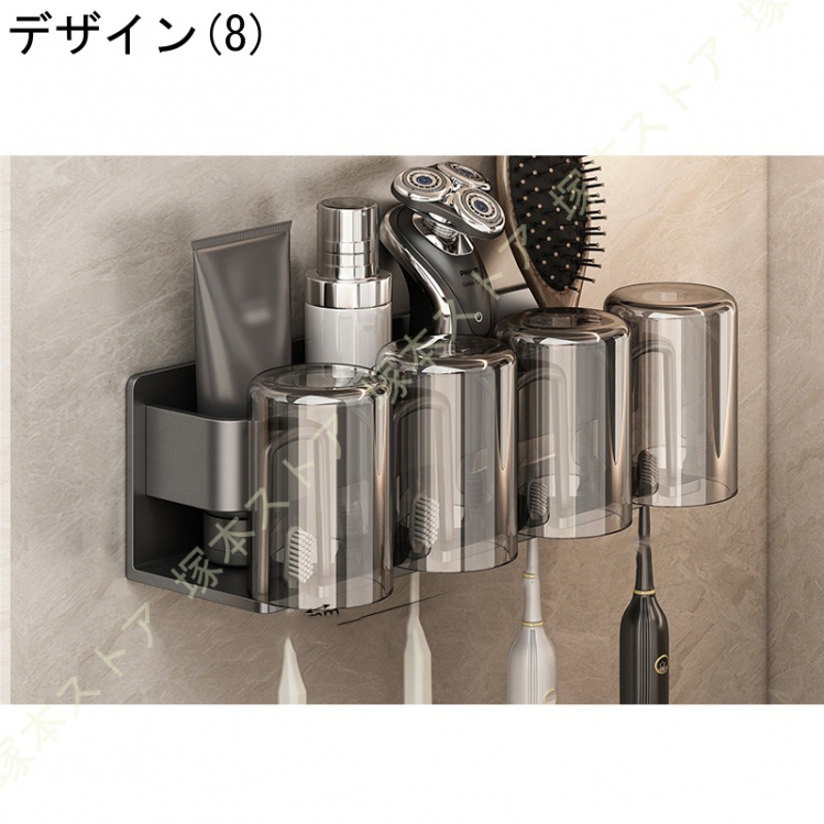デザイン1A=歯ブラシラック2人(140*75*80mm)、 デザイン2 b =歯ブラシラック2人+洗面カップ*2、 デザイン3C=歯ブラシラック2人+洗面カップ*2+歯磨き器(60*50*93mm)、 デザイン4D=歯ブラシラック3人(200*75*80mm)、 デザイン5E=歯ブラシラック3人+洗面器カップ*3、 デザイン6F=歯ブラシラック3人+洗面カップ3+歯磨き器、 デザイン7G=歯ブラシラック4人(260*75*80mm)、 デザイン8H=歯ブラシラック4人+洗面カップ*4、 デザイン9I=歯ブラシラック4人+洗面カップ*4+歯磨き器、 デザイン10J=ドライヤーラック(140*135*96mm)