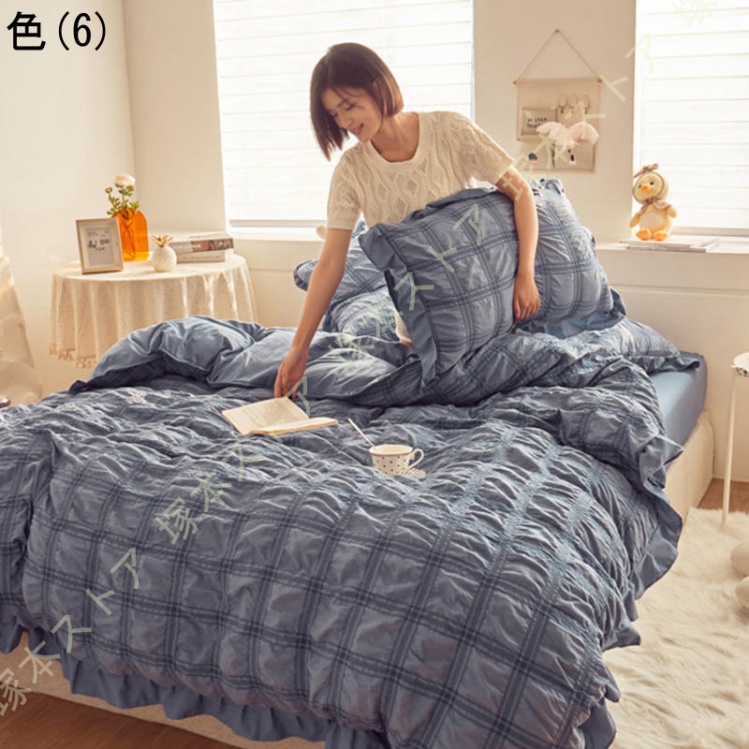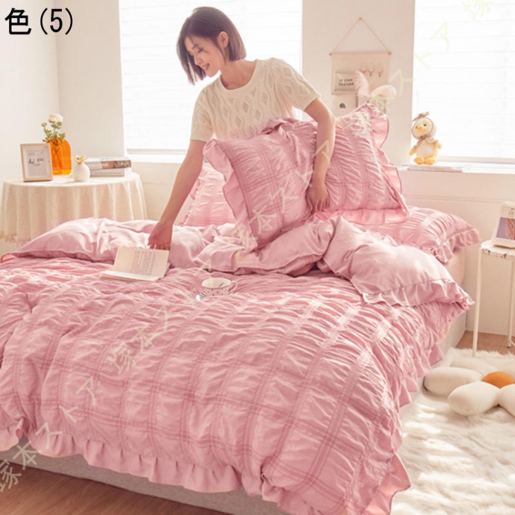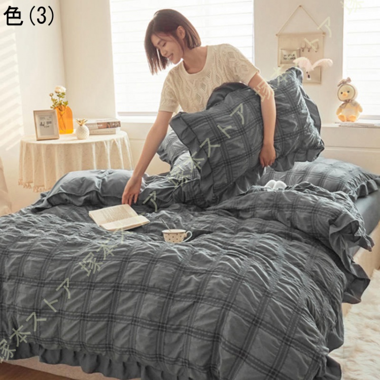 布団カバー セット シアサッカー生地 おしゃれ フラットシーツ シングル セミダブル 柔らか 可愛い ボックスシーツ フリル付き 優しい 肌触り 掛け布団カバー