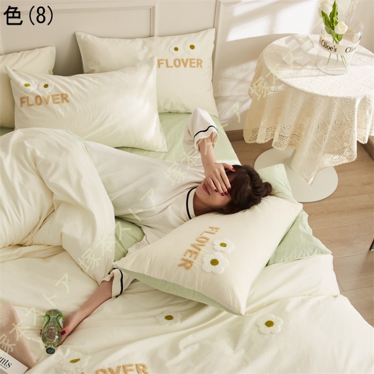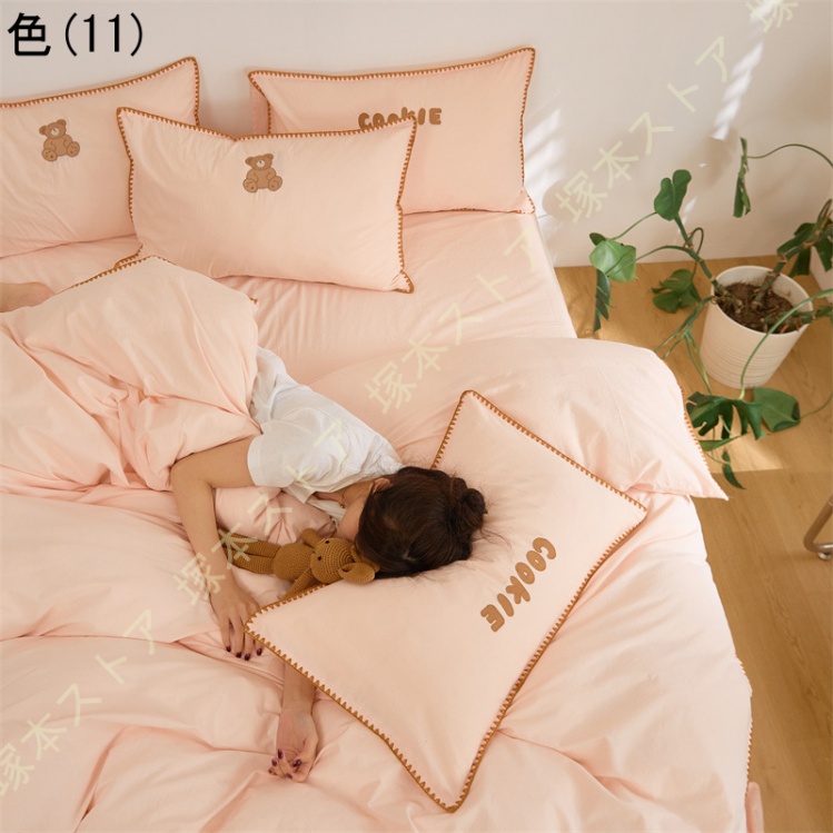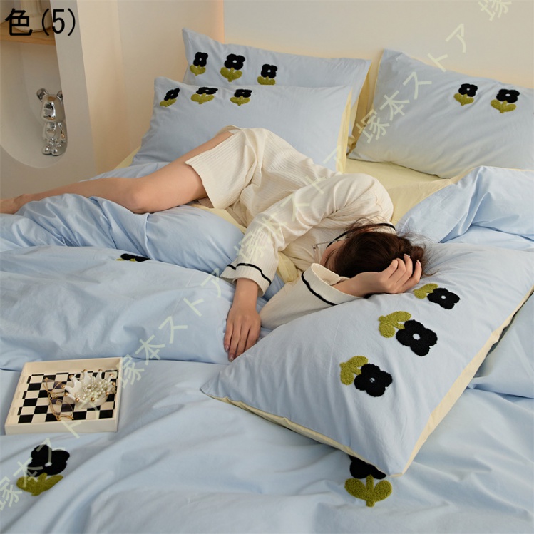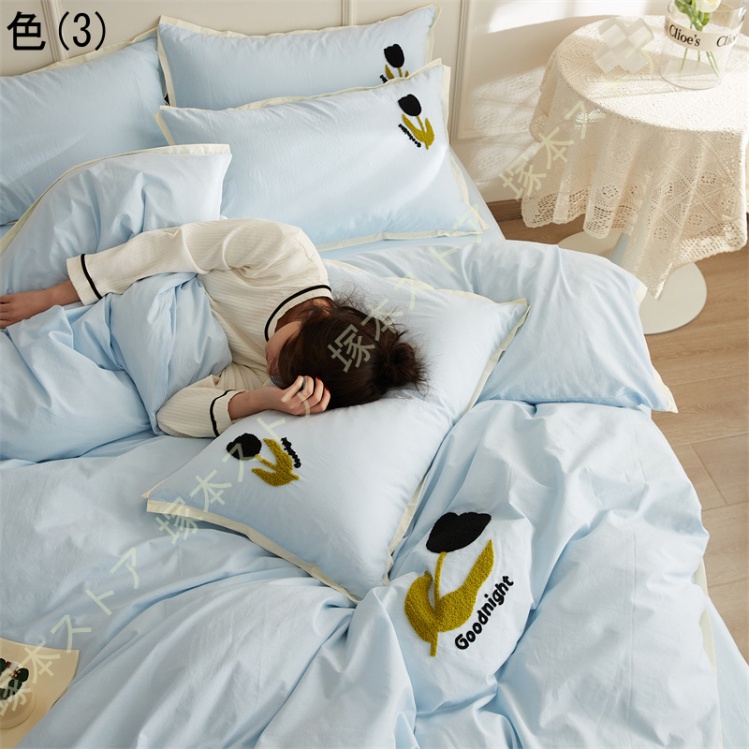 布団カバーセット おしゃれ 掛け布団カバー シンプル フラットシーツ 枕カバー 4点セット ダブル ボックスシーツ マットレスカバー ベッド シーツ モダン 刺繍