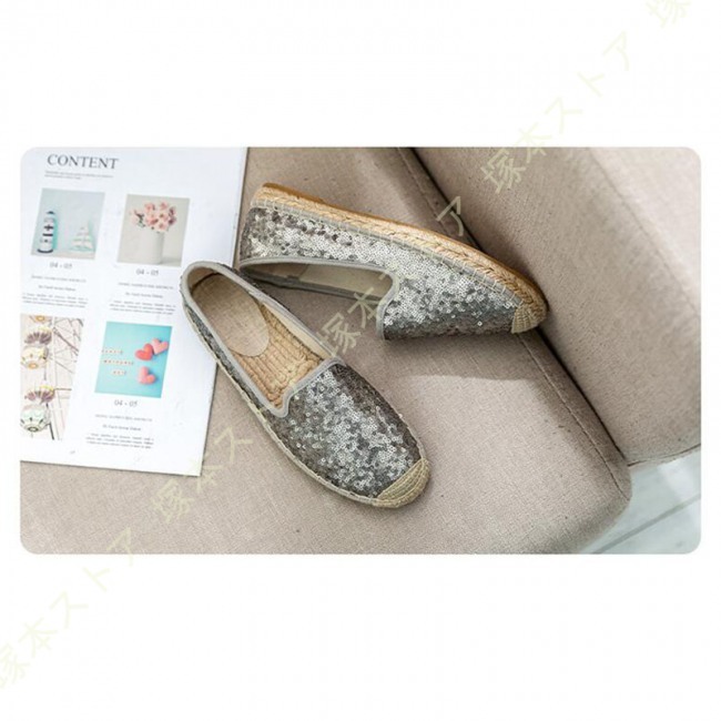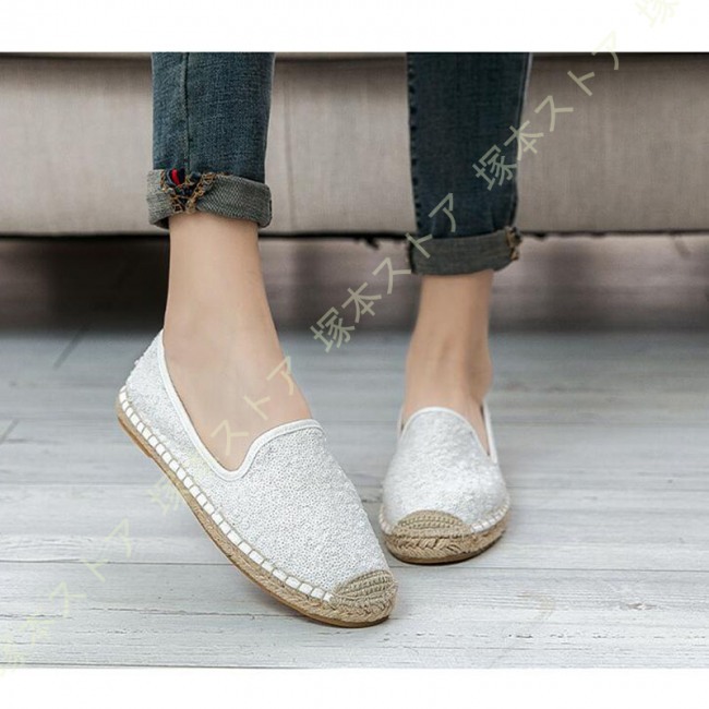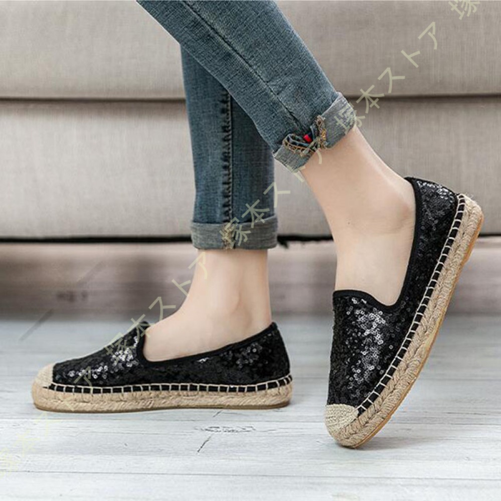 エスパドリーユ レディース スリッポン 厚底 歩きやすい キラキラ スパンコール 黒 白 シルバー 大きいサイズ おしゃれ カジュアルシューズ フラットシューズ ぺたんこ 疲れない 走れる 厚底スニーカー 春夏秋 旅行 通学