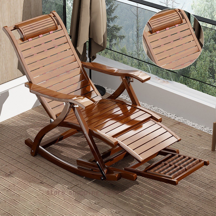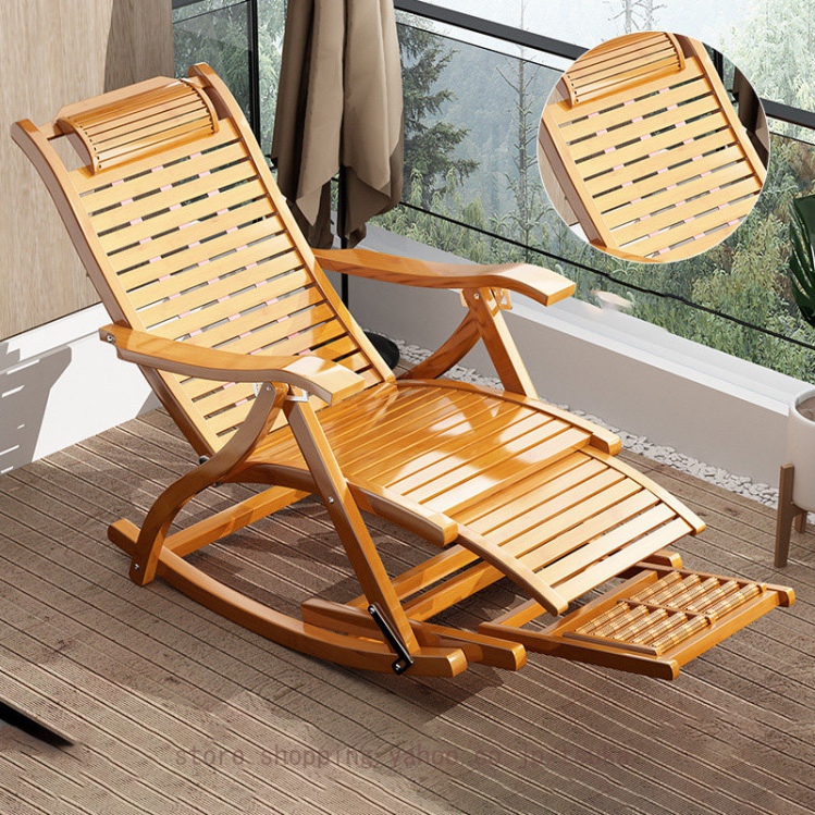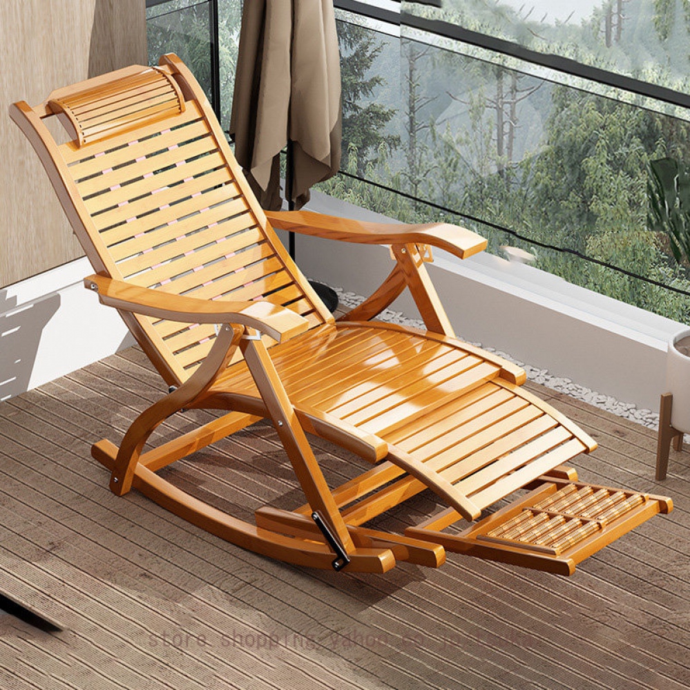 竹製リクライニングロッキングチェアリラックスチェアリクライニングチェアー 一人掛けロッキングチェア 室内折りたたみ可能 持ち運び簡単 屋内 屋外 兼用