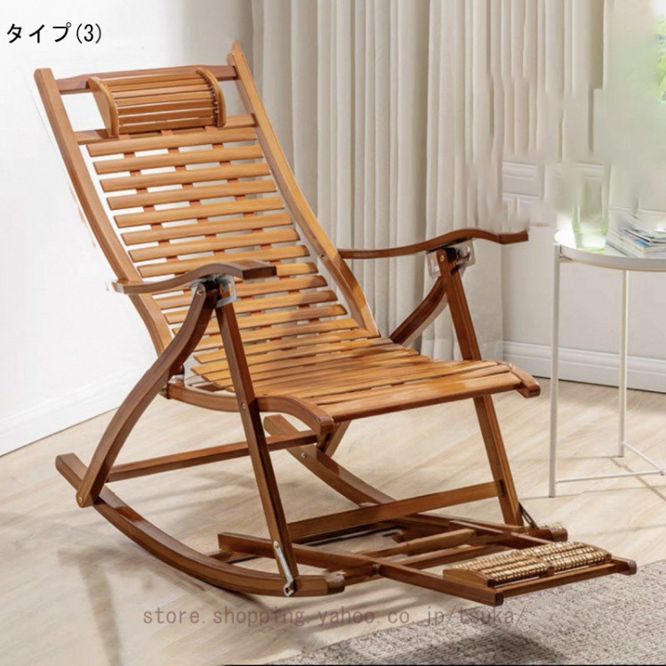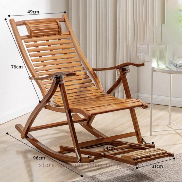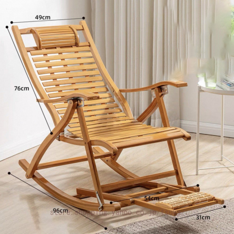 竹製ロッキングチェア 揺れる椅子 折りたたみ式 リラックスチェア バンブー 折りたたみ昼寝チェア 枕付き 高通気性 揺れ揺れ椅子揺り椅子 パーソナルチェア