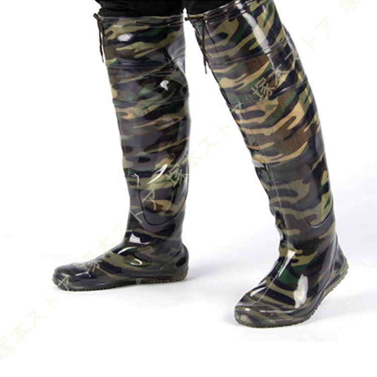 ウェーダー 防水 釣り用スーツ 迷彩 ウエストタイプ 防水ズボン 防水長靴 ラジアルソール 渓流 海 田植え 水産業 漁業 鮮魚店 水場仕事 釣り 撥水加工 耐滑