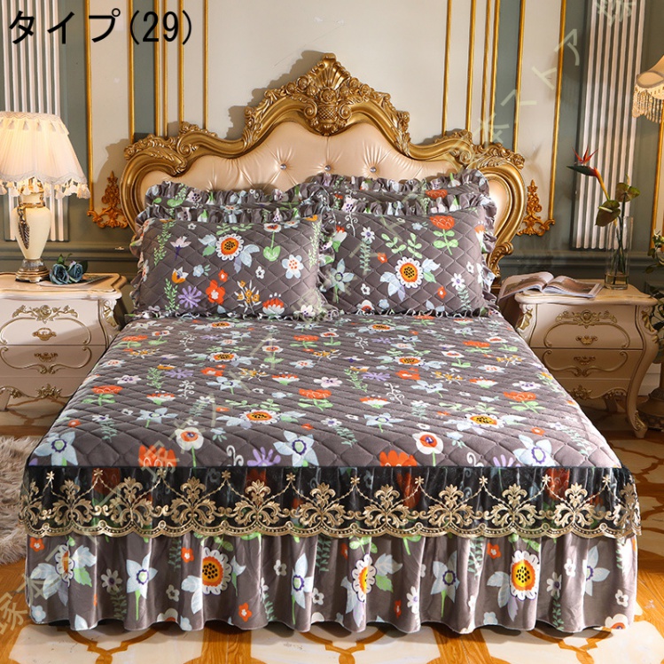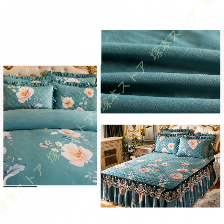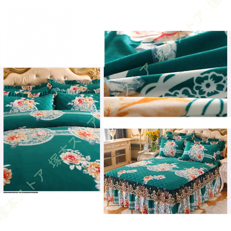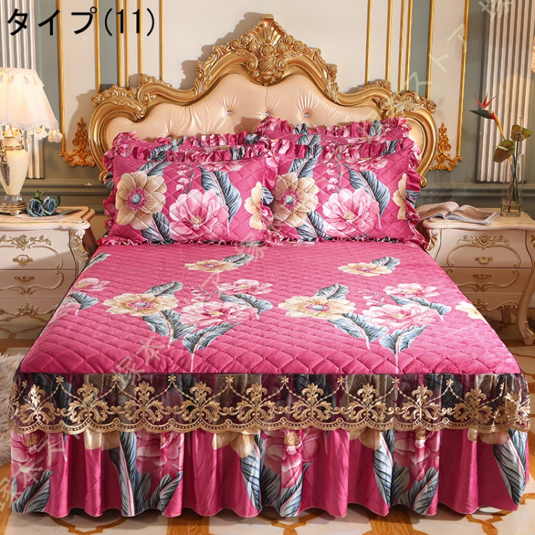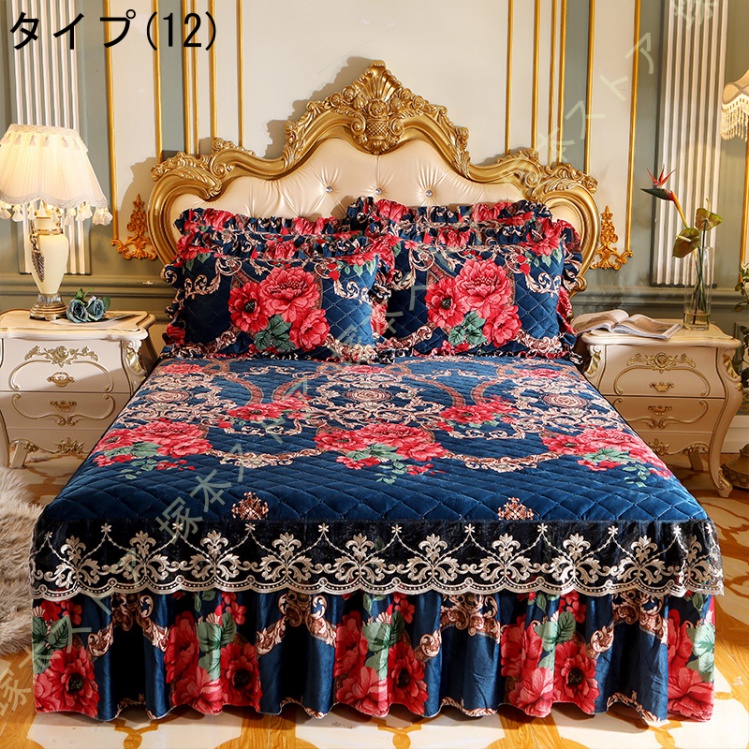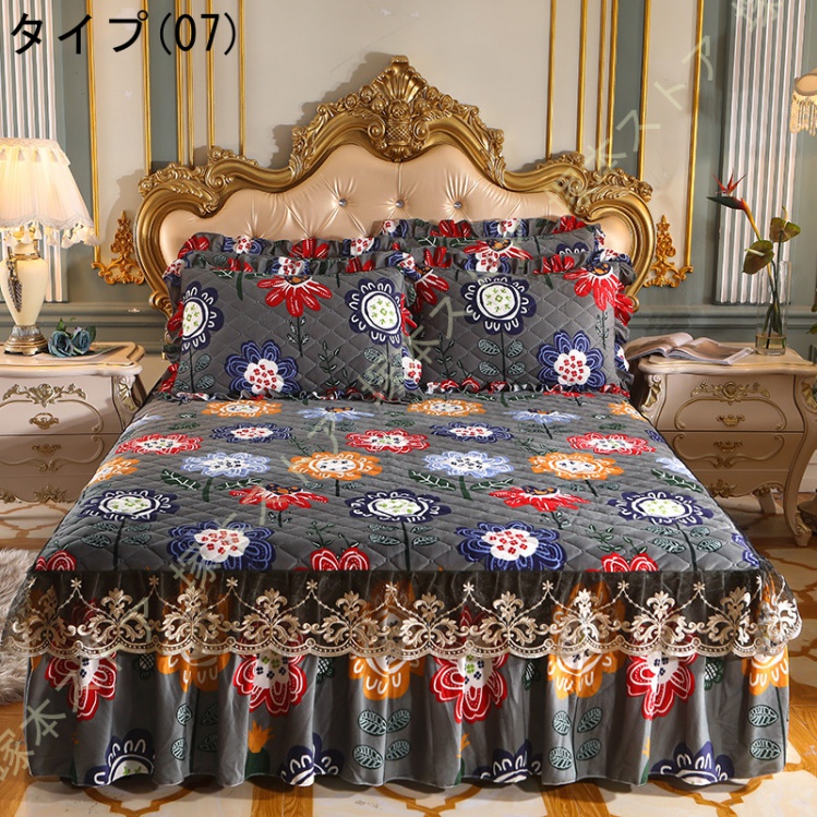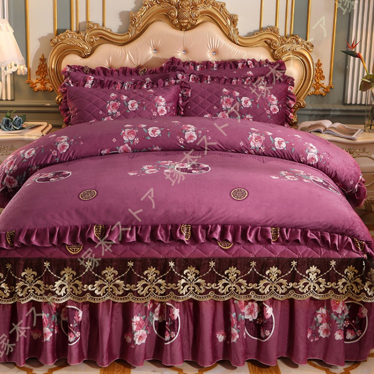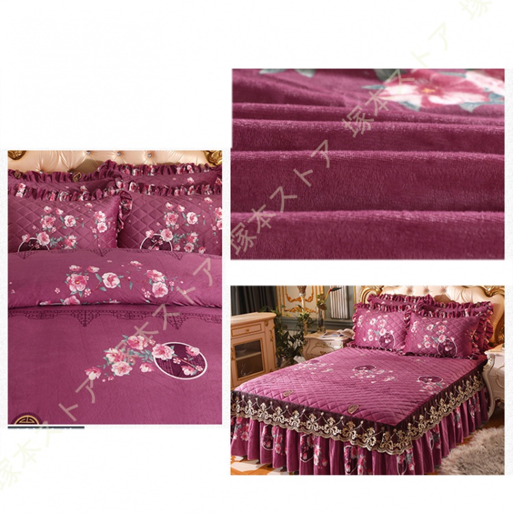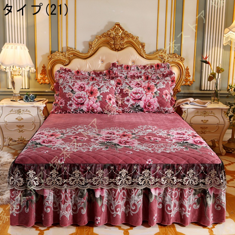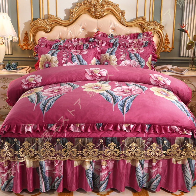 防寒 冬 ベッドスカート シングル 宮廷風 薔薇柄 マットレスカバー ダブル 単品 掛ふとんカバー 枕カバー 寝具カバー フランネル あったか 静電防止 快眠
