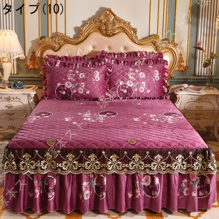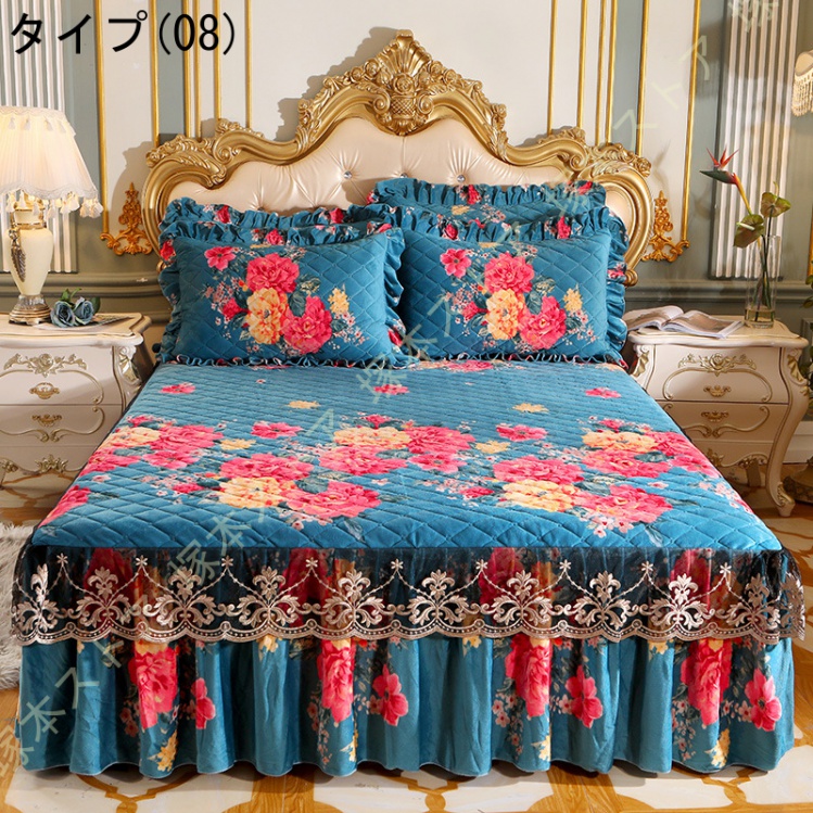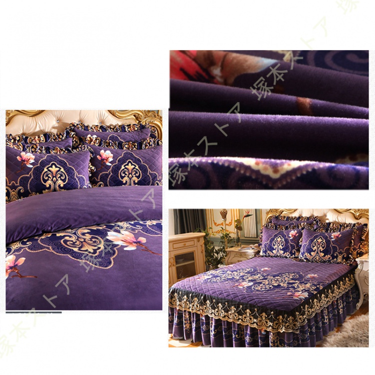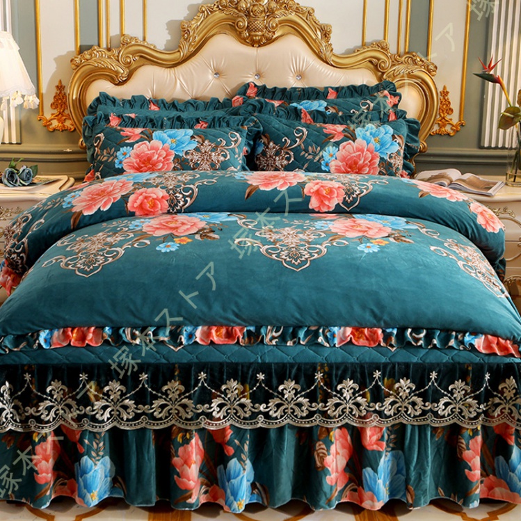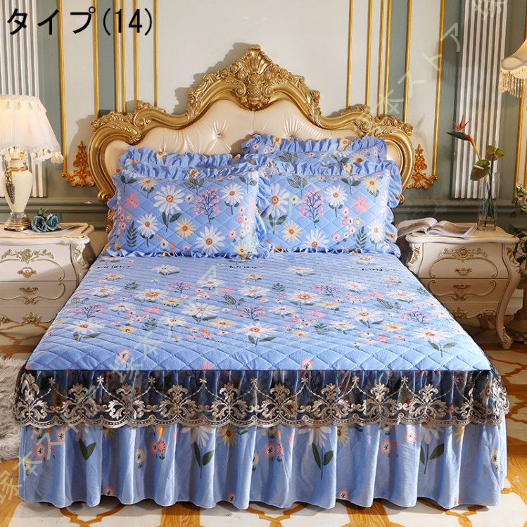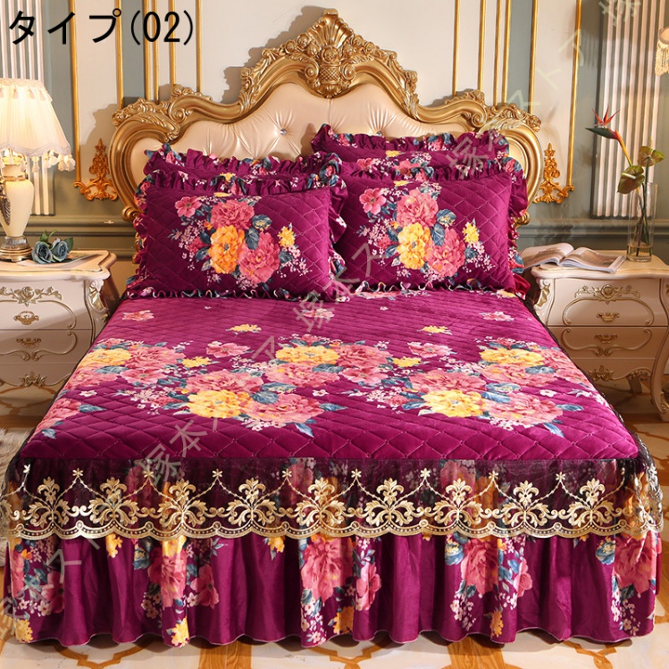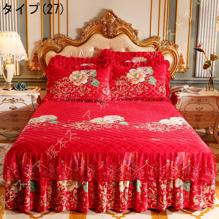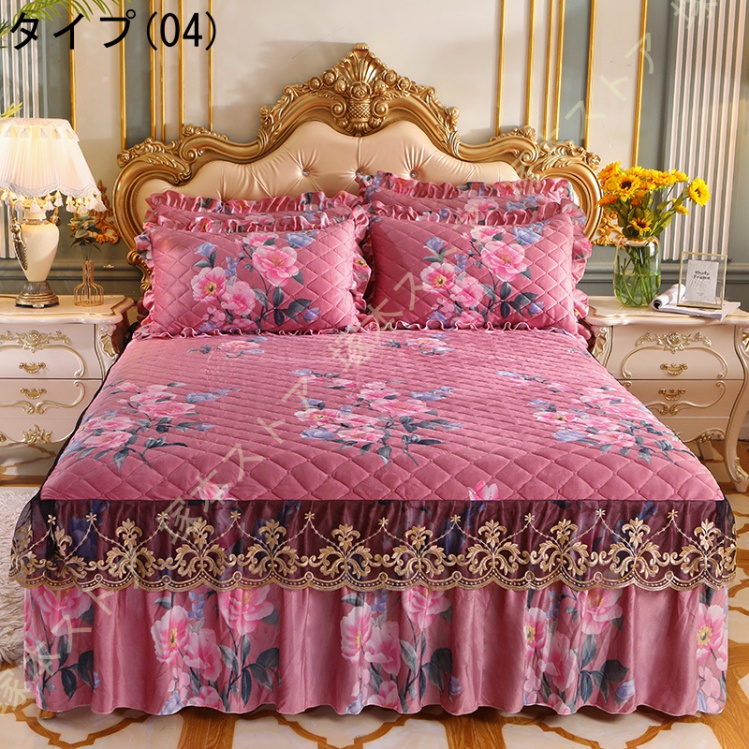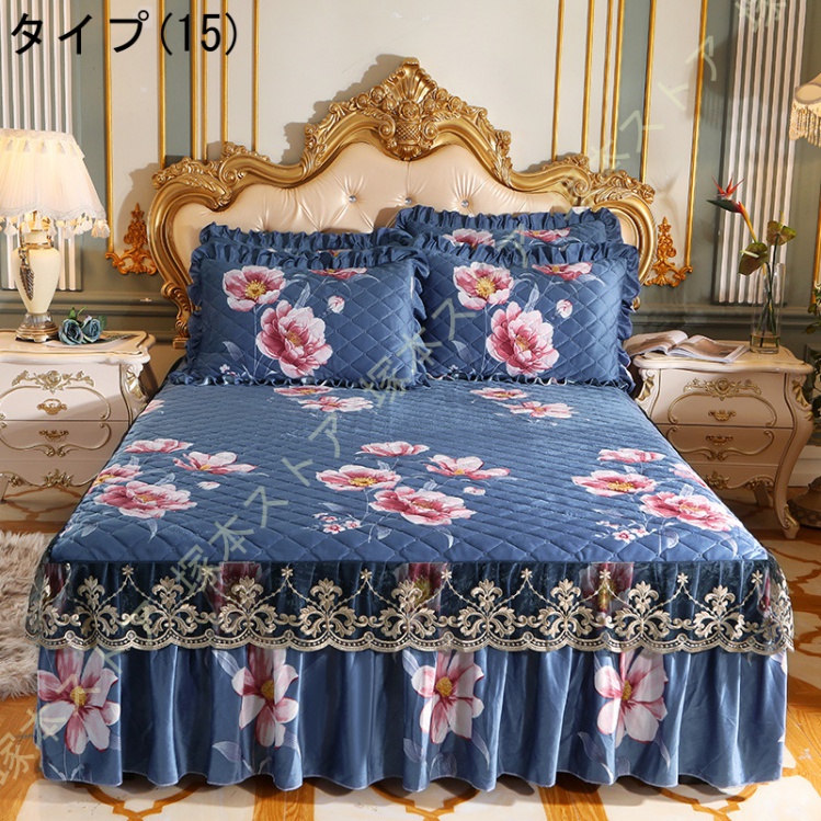 防寒 冬 ベッドスカート シングル 宮廷風 薔薇柄 マットレスカバー ダブル 単品 掛ふとんカバー 枕カバー 寝具カバー フランネル あったか 静電防止 快眠