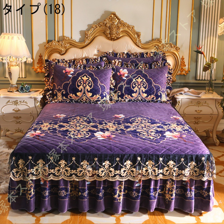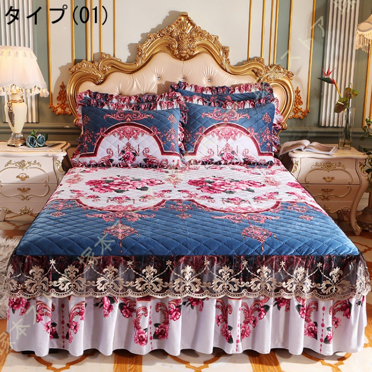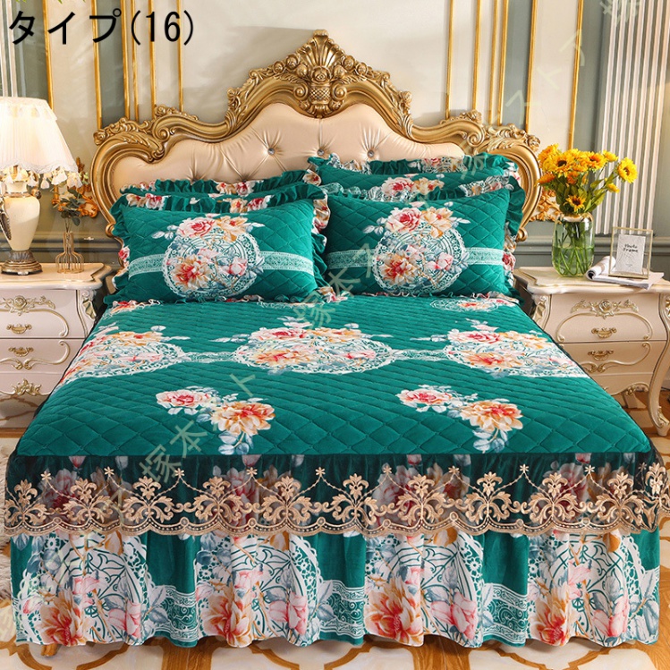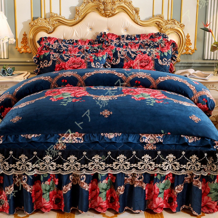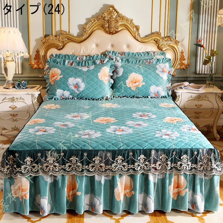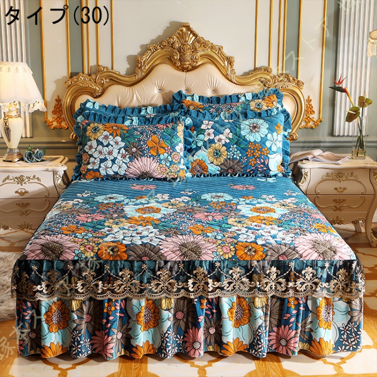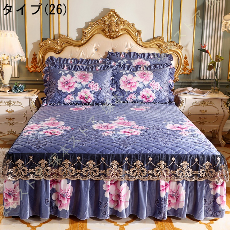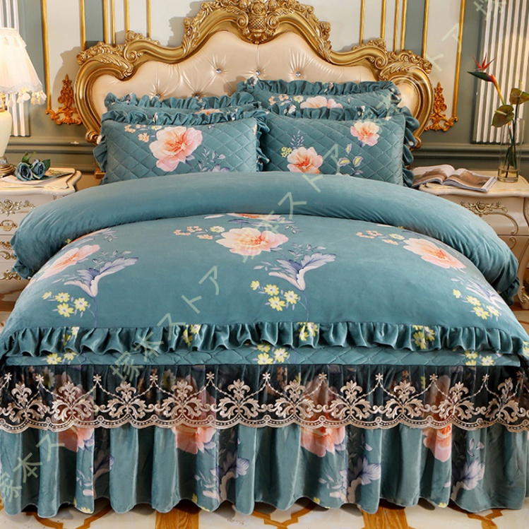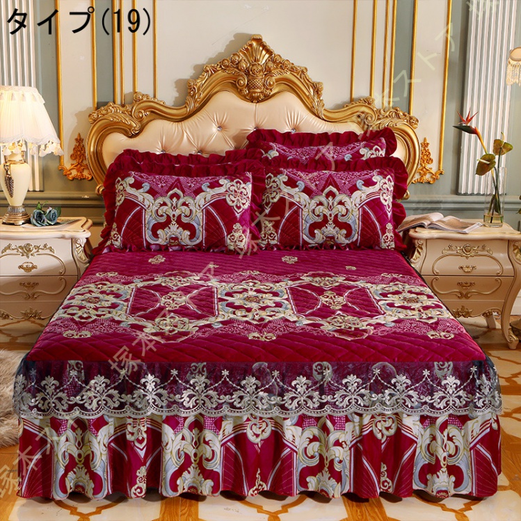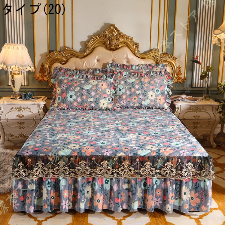 防寒 冬 ベッドスカート シングル 宮廷風 薔薇柄 マットレスカバー ダブル 単品 掛ふとんカバー 枕カバー 寝具カバー フランネル あったか 静電防止 快眠