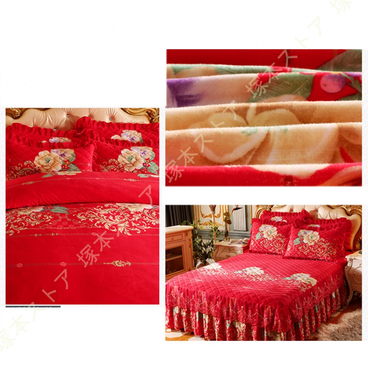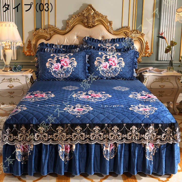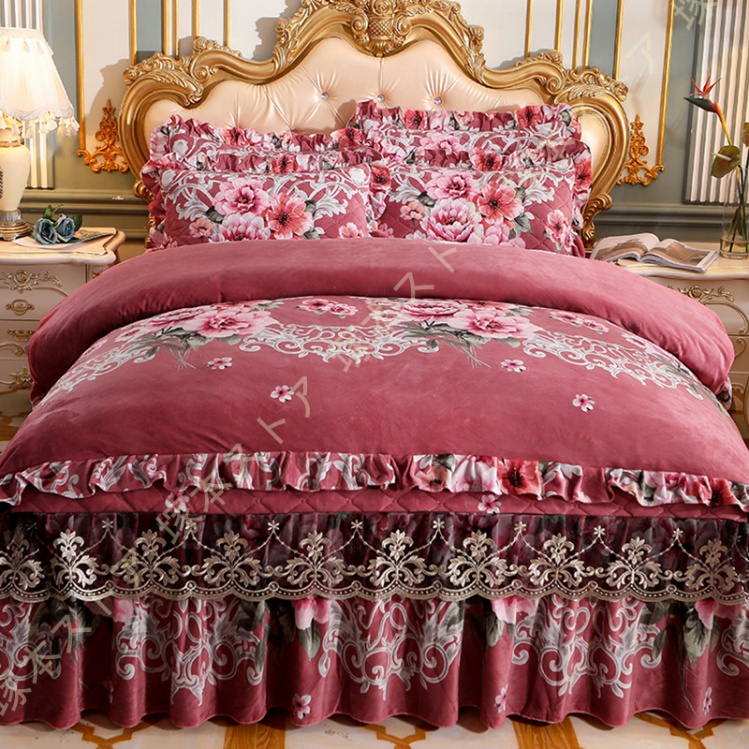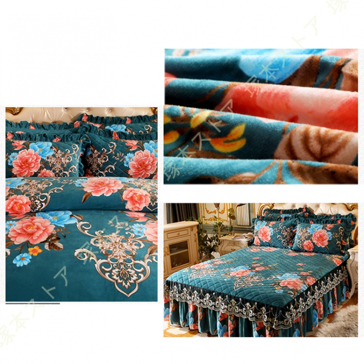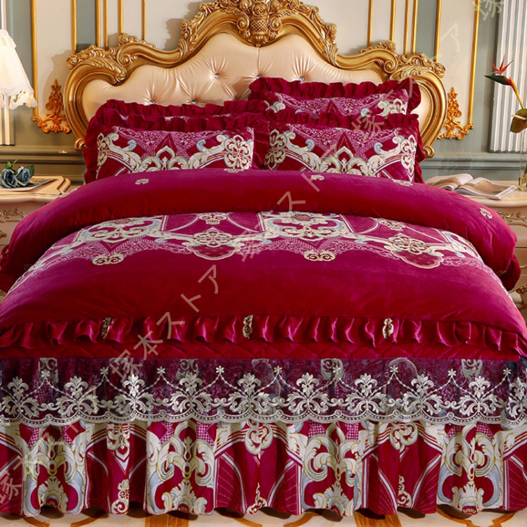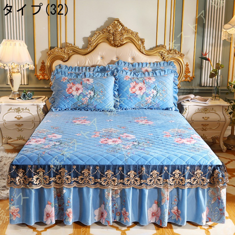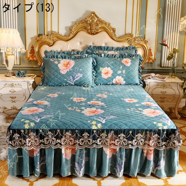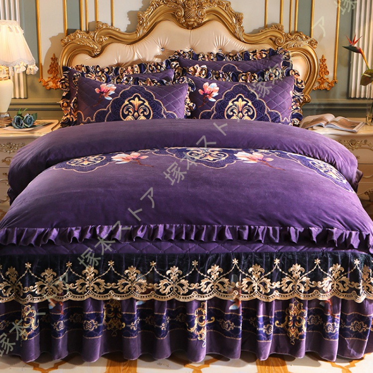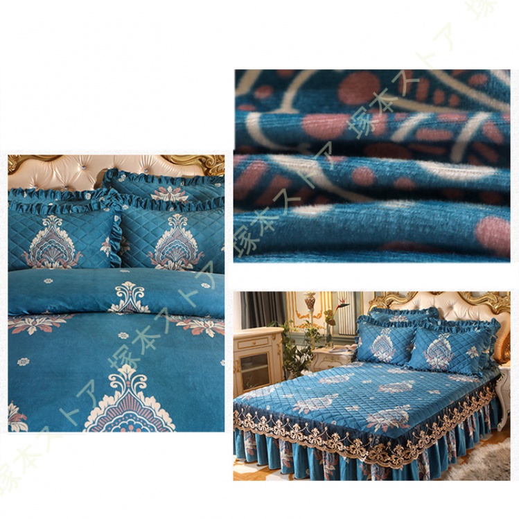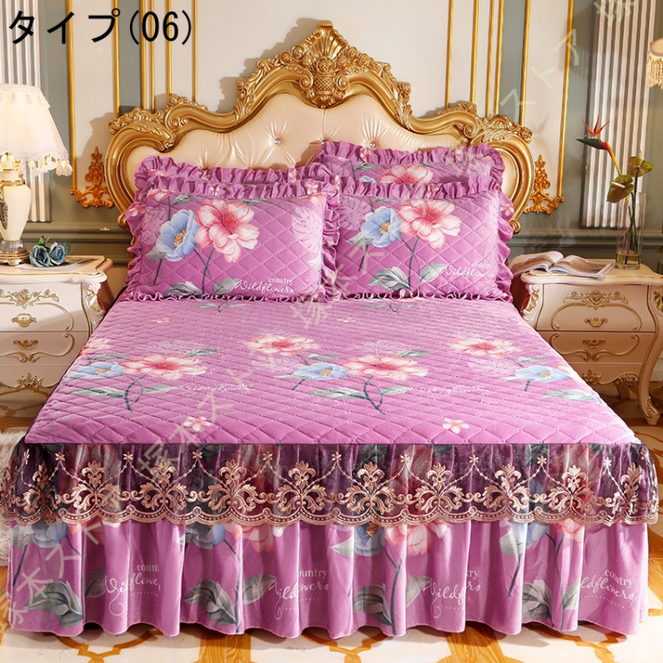 防寒 冬 ベッドスカート シングル 宮廷風 薔薇柄 マットレスカバー ダブル 単品 掛ふとんカバー 枕カバー 寝具カバー フランネル あったか 静電防止 快眠