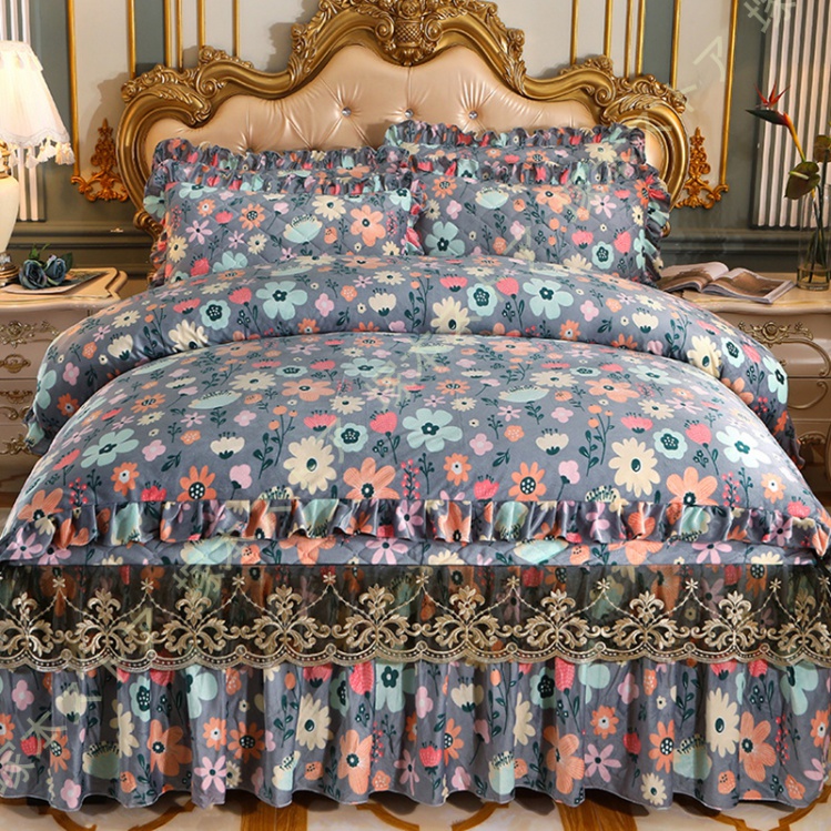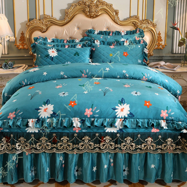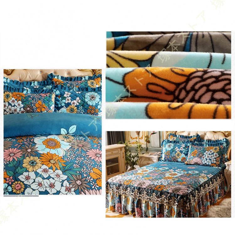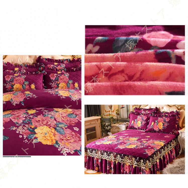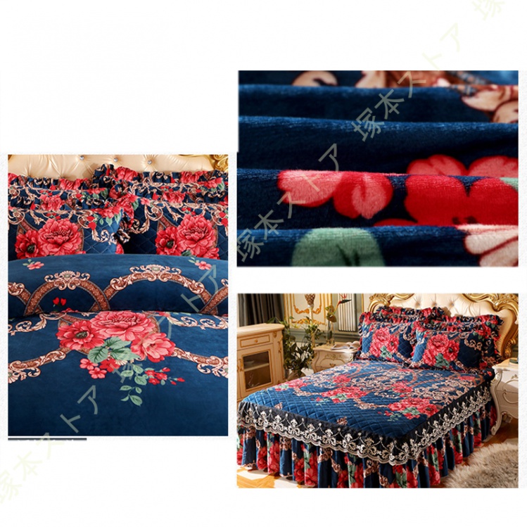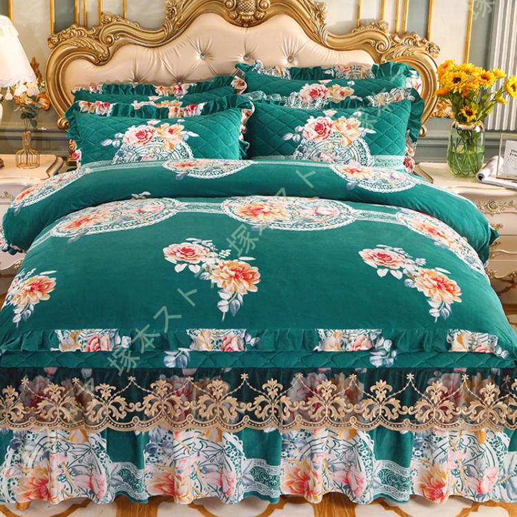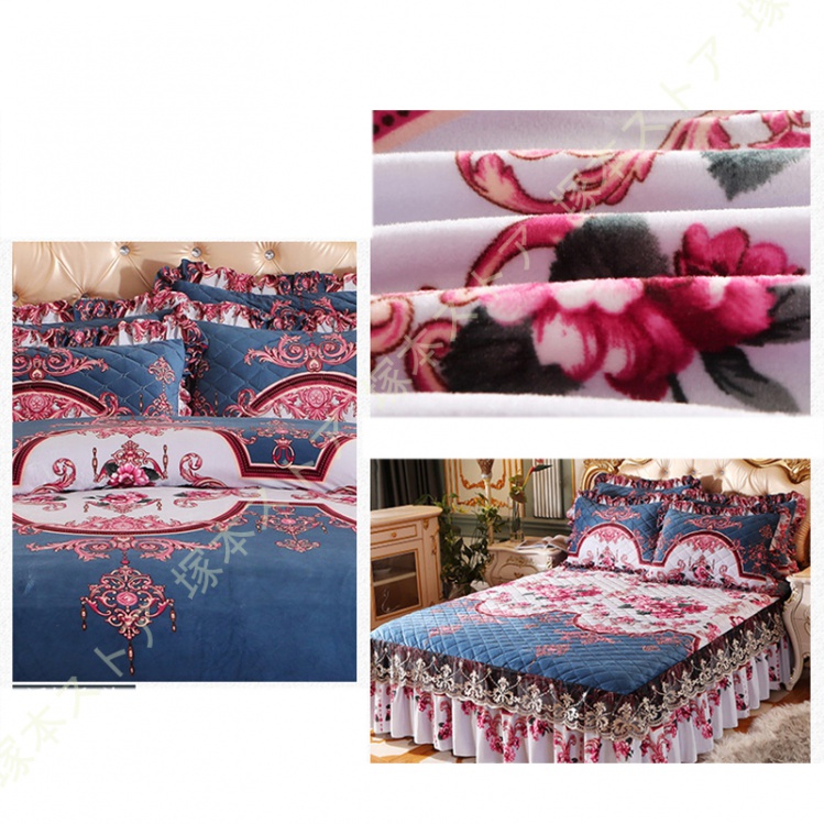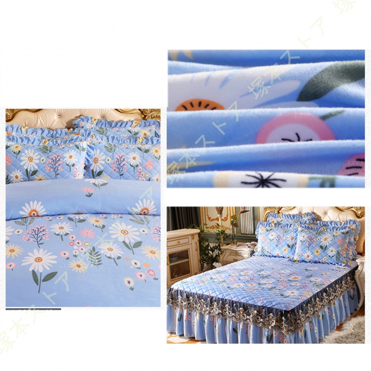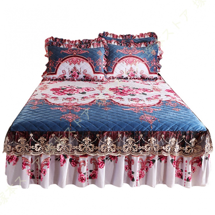 防寒 冬 ベッドスカート シングル 宮廷風 薔薇柄 マットレスカバー ダブル 単品 掛ふとんカバー 枕カバー 寝具カバー フランネル あったか 静電防止 快眠
