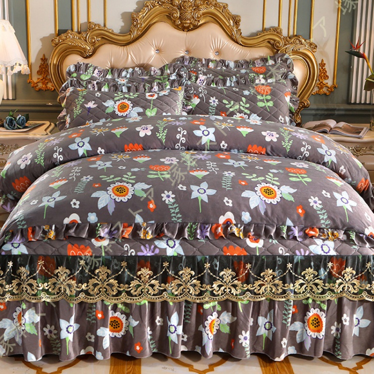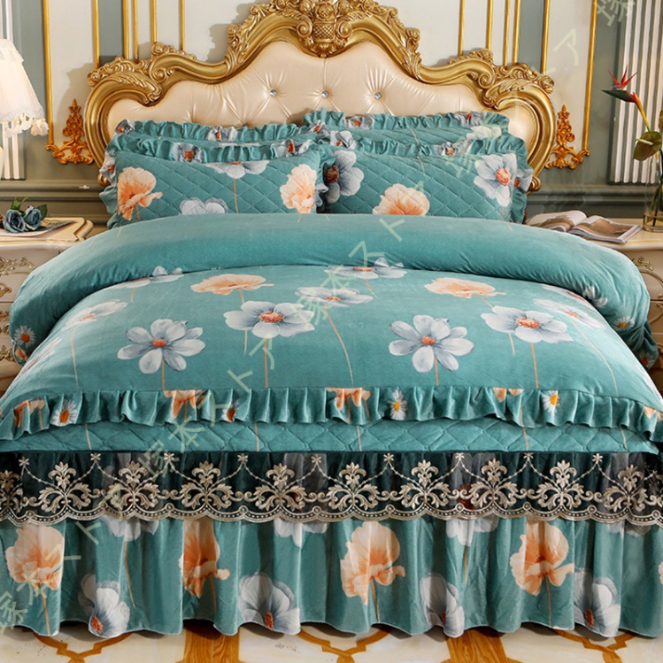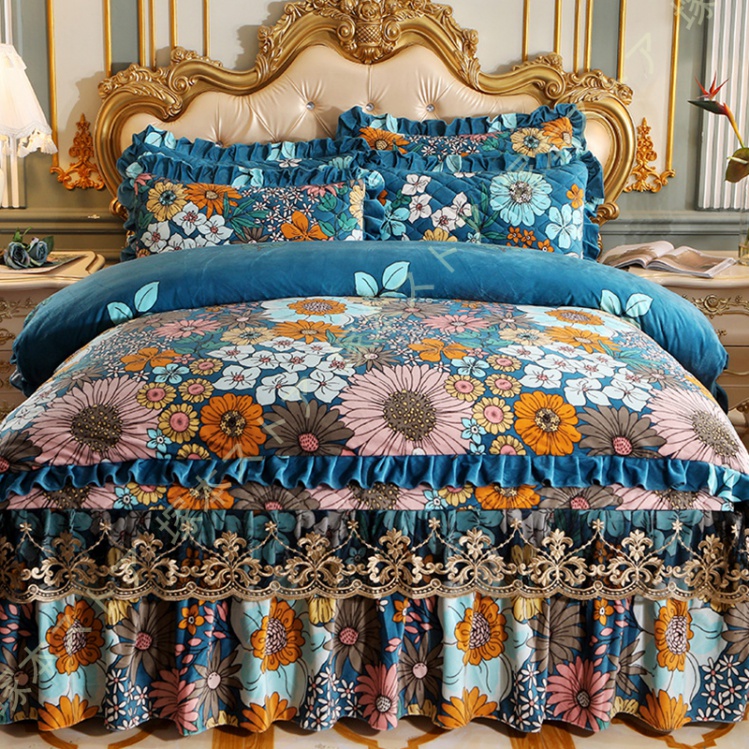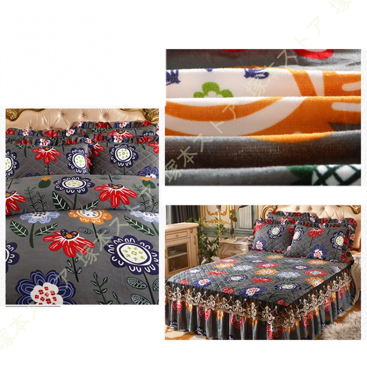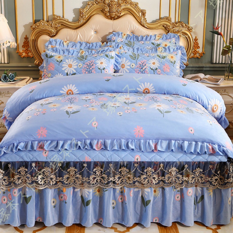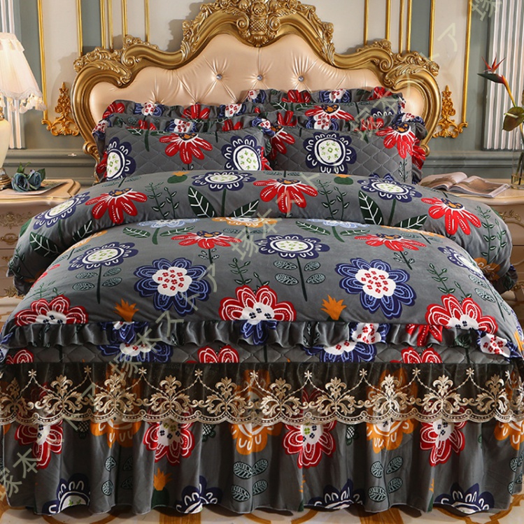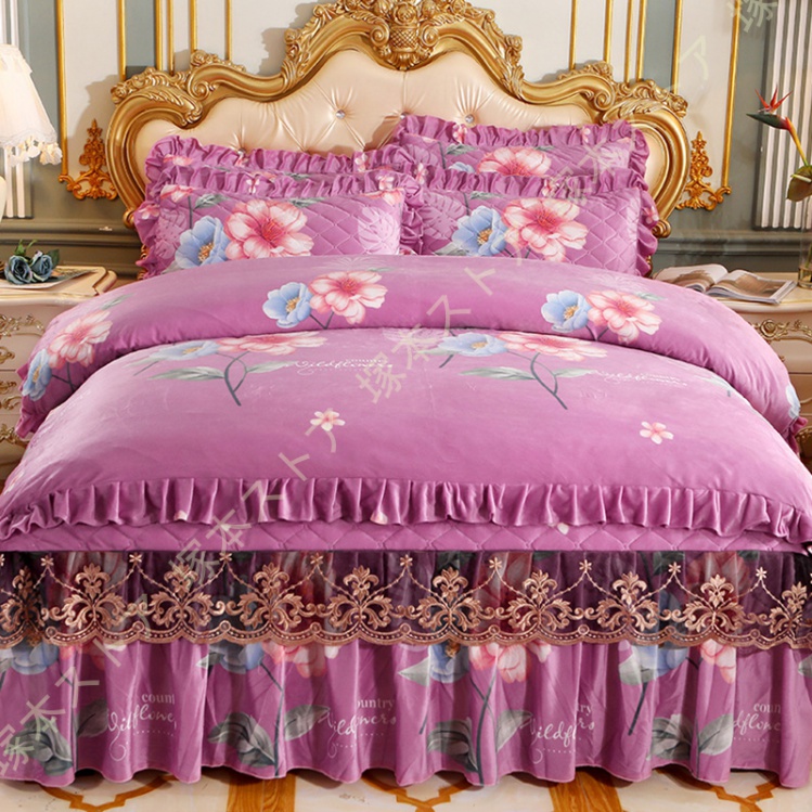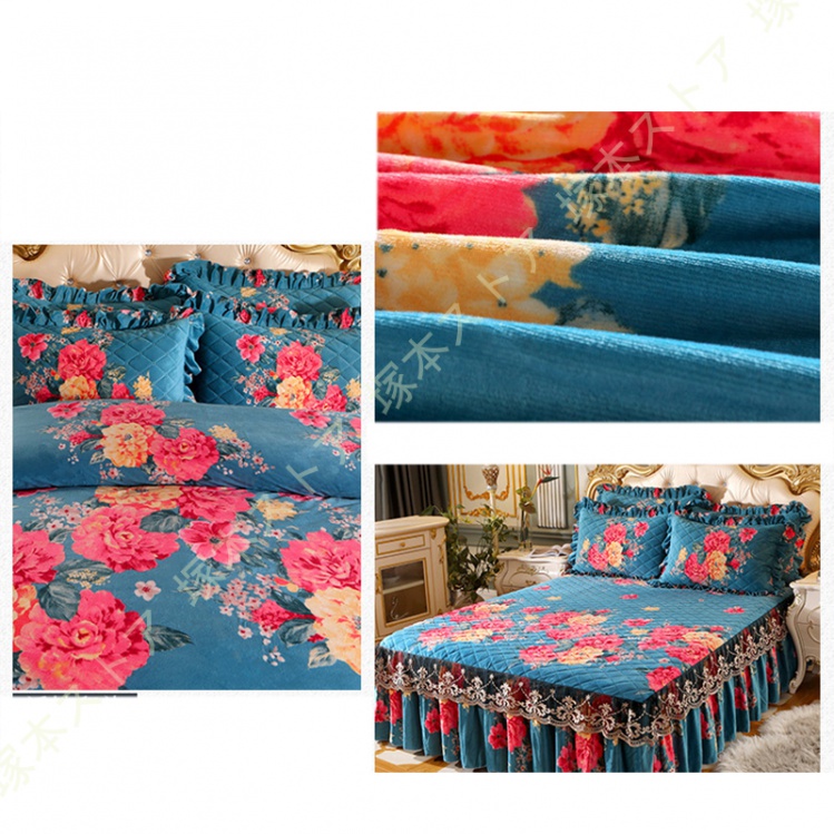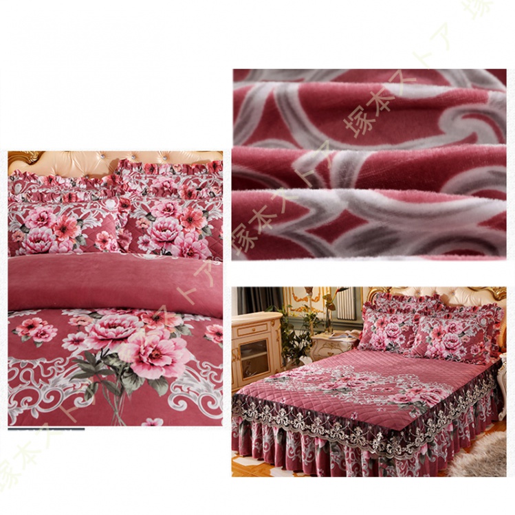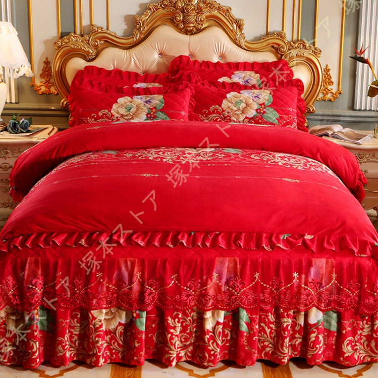 防寒 冬 ベッドスカート シングル 宮廷風 薔薇柄 マットレスカバー ダブル 単品 掛ふとんカバー 枕カバー 寝具カバー フランネル あったか 静電防止 快眠