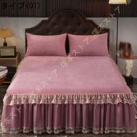 ベッドスカート シングル ベッドシーツ 豪華 柔らかい 肌に優しい マットレスカバー 冬 レース付き ベッドカバー 枕カバー 厚手 レース マイクロファイバー