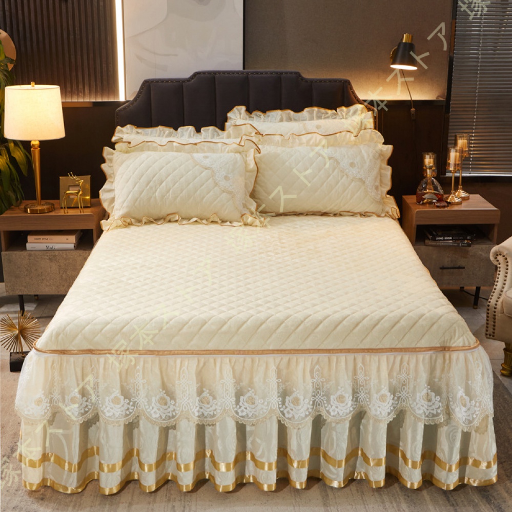 宮廷風 ベッドスカート ダブル フラネル シーツ 暖かい マットレースカバー 冬 フリル付き マットレスカバー シングル ダブル プリンセス風 ベッドカバー