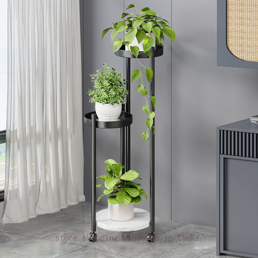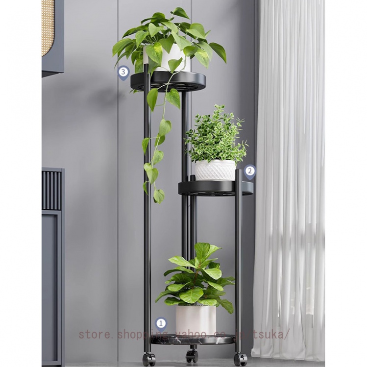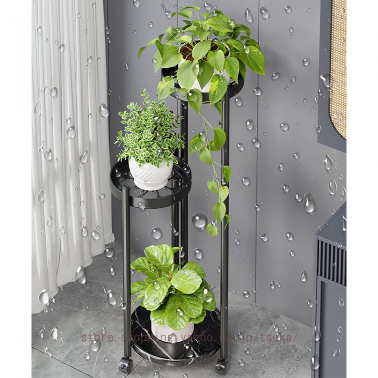 フラワースタンド 室内 玄関 アイアン スリム 省スペース シンプル プランタースタンド 花台 植木鉢台 鉄製 園芸ラック 錆びない 盆栽棚 キャスター付き