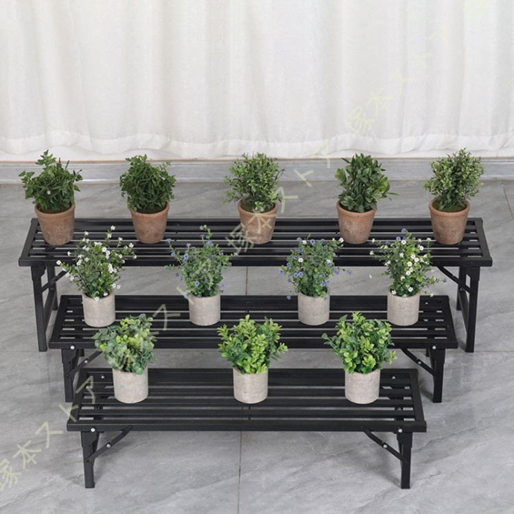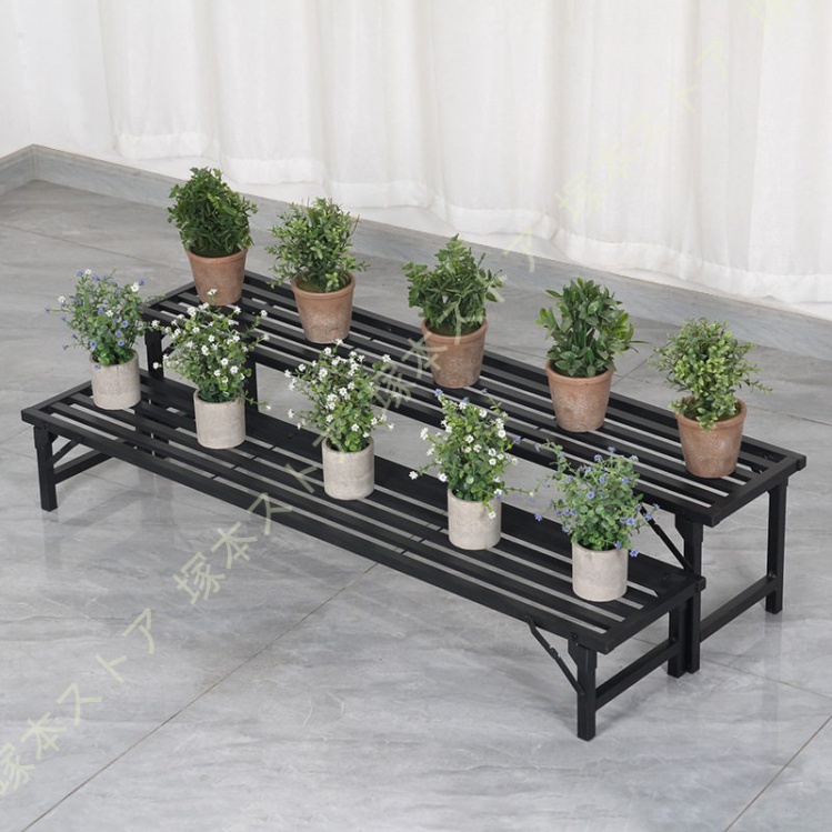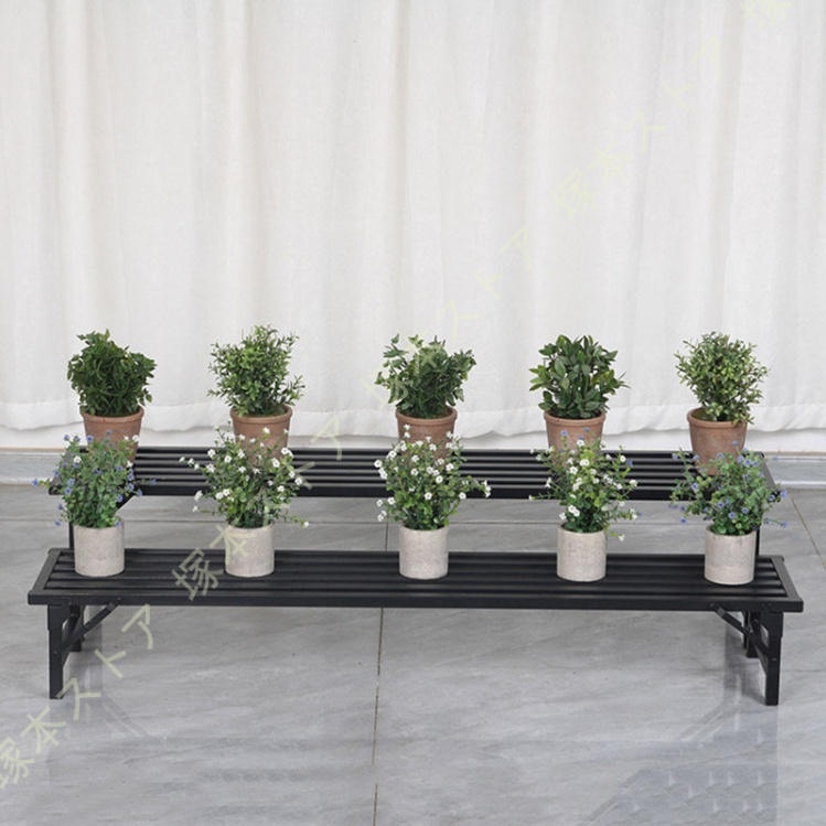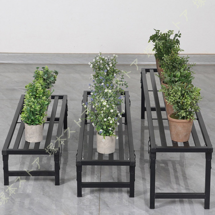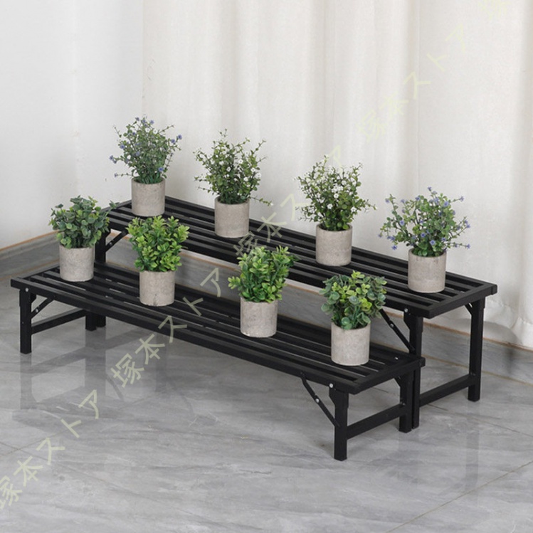 プラントスタンド 屋外植物棚 屋内用 1段 高耐久 フラワースタンド 植物ラック 室内 スチール製 植木鉢スタンド 観葉植物台 植木鉢台 複数の植物用 横型
