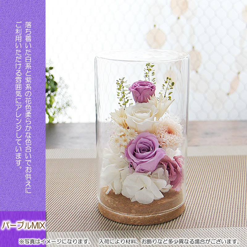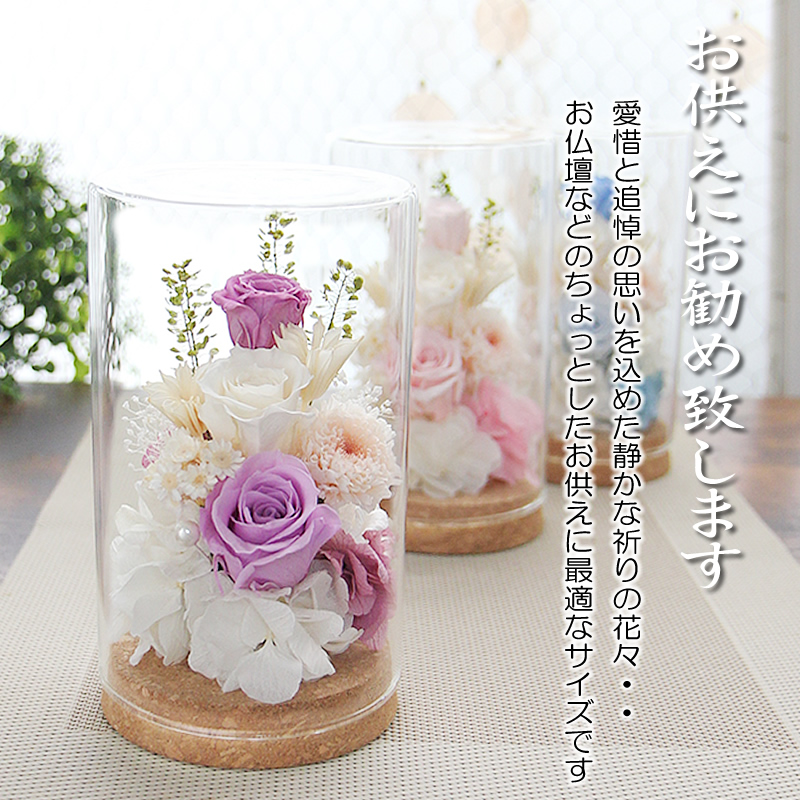 プリザーブドフラワー お供え 仏花 プレゼント ギフト アレンジメント ステラ ガラスドーム 送料無料 お盆 供花 一周忌 初盆
