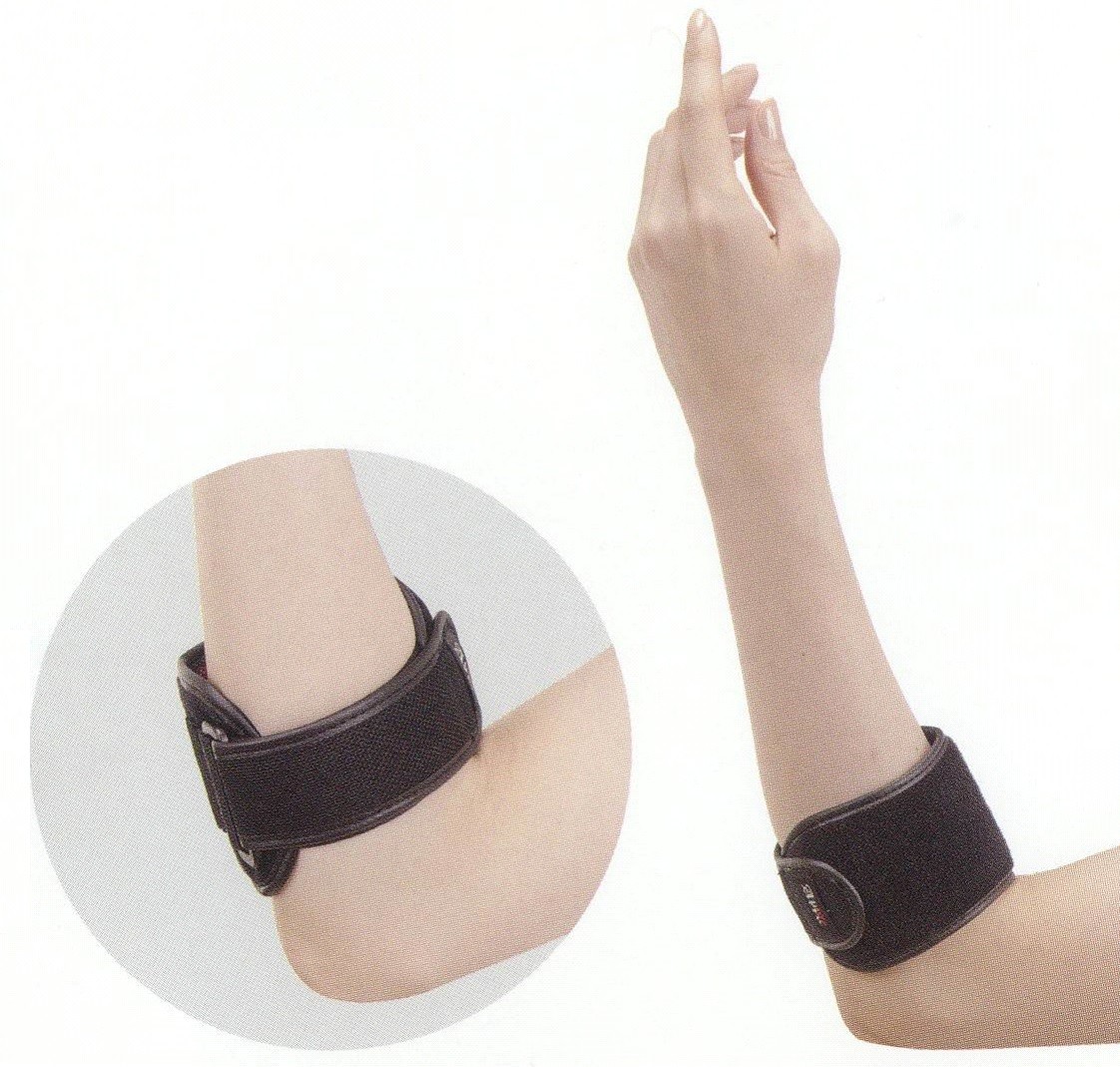 ◆手首での衝撃は筋肉を通り、上腕骨外側上顆ヘと伝わります。この衝撃が何回も続くと、筋肉と肘の骨がくっついている部分【上腕骨外側上顆】を痛めてしまいます。そんなヒジに伝わる衝撃を、クッション性に優れた甲丸{かまぽこ形}パッドが的確に押え柔げます。