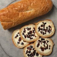 ・フランスパンにレーズンバターを詰めたお洒落な一品。凍ったままカットしてお上がりください。