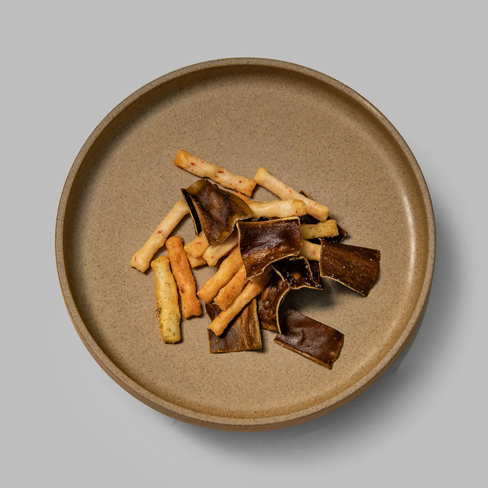 海老マヨネーズと青のりマヨネーズのあられ、たっぷり揚げ昆布の旨味が楽しめます。