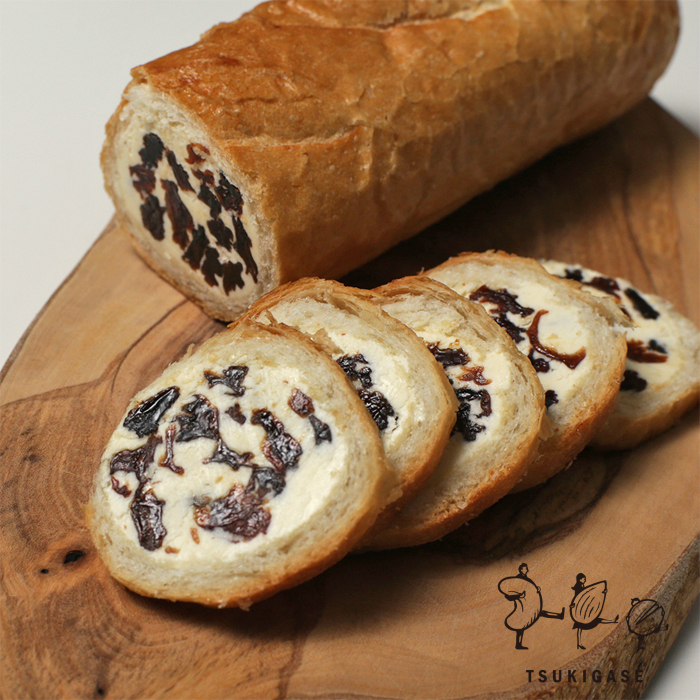・フランスパンにレーズンバターを詰めたお洒落な一品。凍ったままカットしてお上がりください。