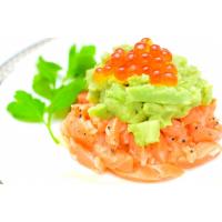 アボカドスモークサーモンロール、アボカドサーモンいくらのタルタル、アボカドタコライス、まぐろとアボカドのポキ丼
