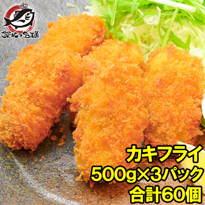 カキフライ 手造りカキフライ 60個 1.5kg 500g ×3パック 牡蠣 かき