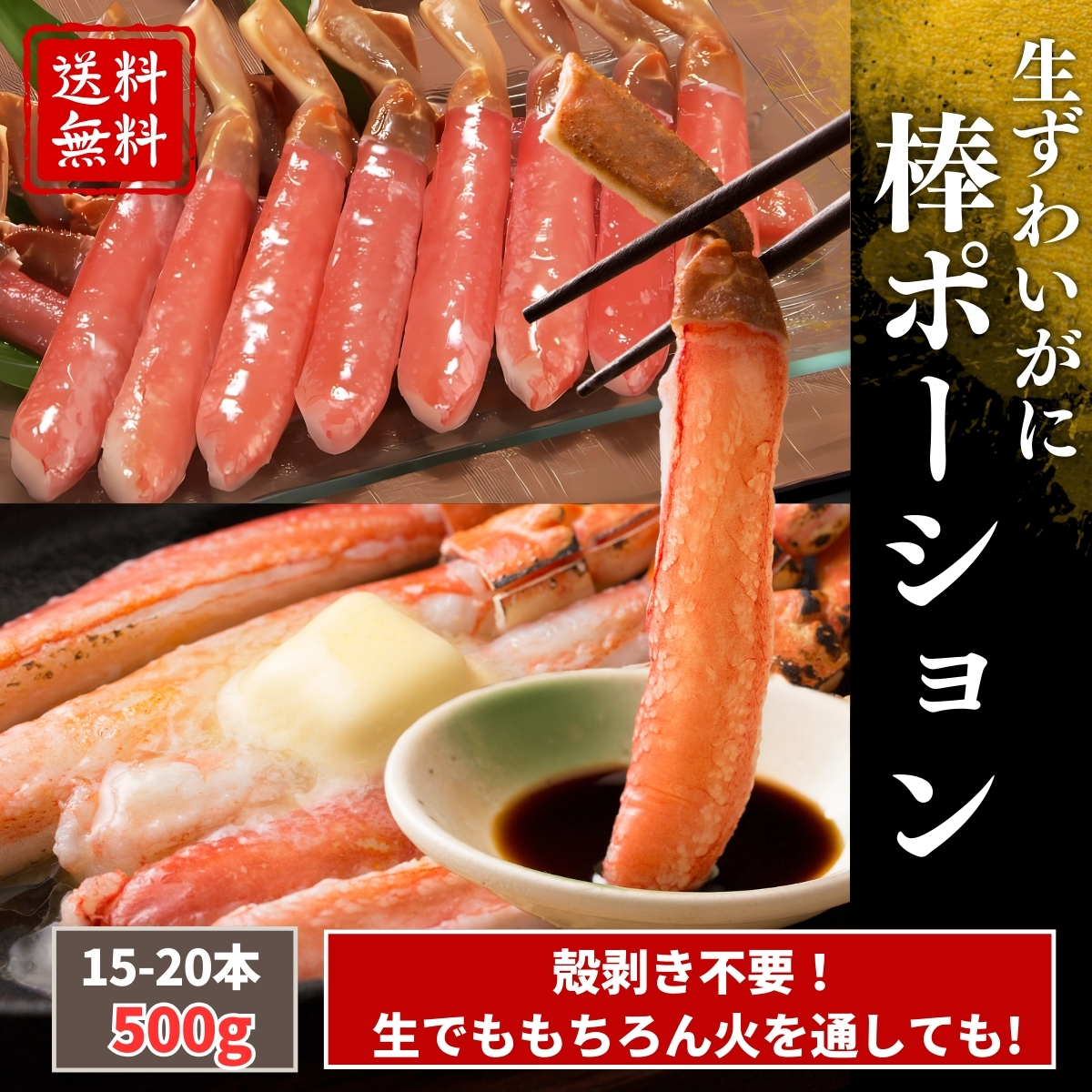 生ずわいがに ポーション 棒肉 1-2人前 500gあたり15-20本入 まとめ買いでお得 蟹しゃぶ 刺身 ギフト 贈り物 プレゼント 年末年始 クリスマス 歳暮 御祝