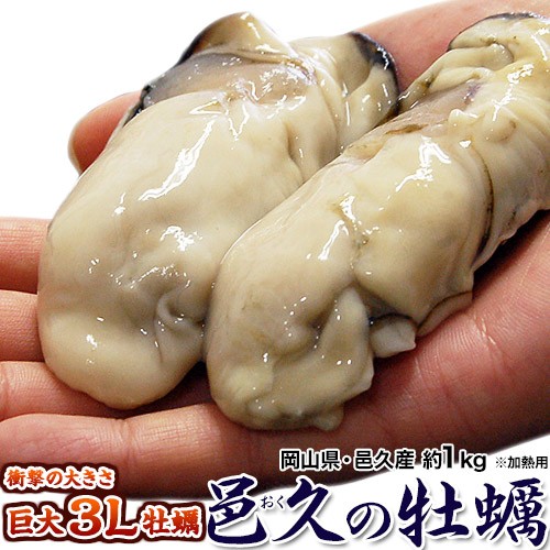 岡山県産 邑久の牡蠣 特大3Lサイズ 約1kg(解凍後約800g)加熱調理用 ※冷凍