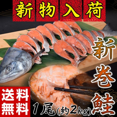 北海道産 秋鮭の新巻鮭 姿1尾 約2kg 中辛:塩分約3% (メス) 天然鮭 化粧箱入り ※冷凍 送料無料
