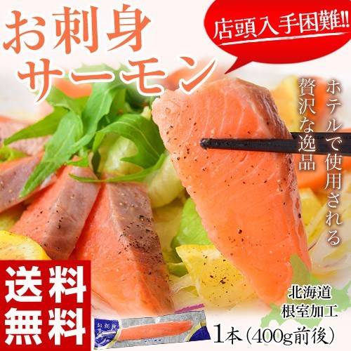 送料無料 ホテル等で使われる贅沢な逸品「お刺身サーモン」 1本(400g前後) ※冷凍 【同梱不可】 ○