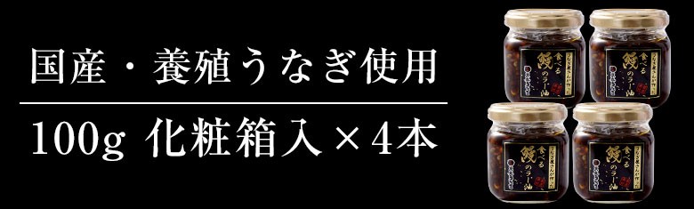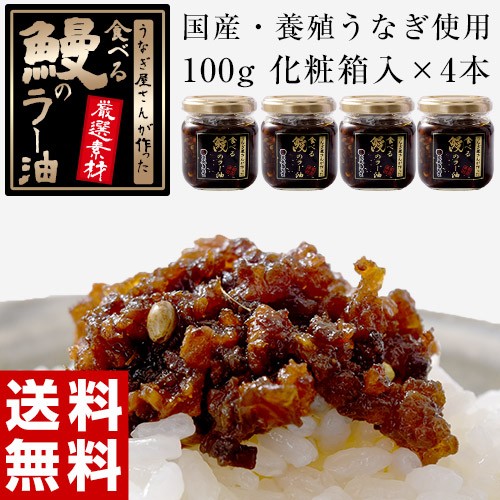 ラー油 辣油 調味料 うなぎ処 京丸 鰻屋さんの食べるラー油 4瓶セット:1瓶100g 蒲焼入り 国産ウナギ使用 おかず ふりかけ 化粧箱 常温 送料無料