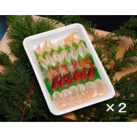 スライス済みなので解凍後、器に盛り付けるだけで貝刺し盛り合わせの完成。