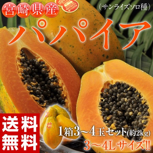 《送料無料》宮崎県産 『パパイア』(サンライズソロ種) 秀品・約2kg(3〜4玉) ※常温 frt ○