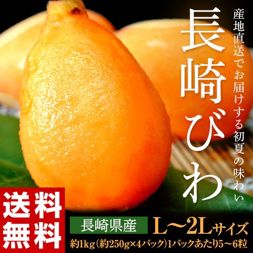 長崎びわ 長崎県産 L〜2L 約1kg(250g×4パック) 秀品 送料無料 びわ ビワ