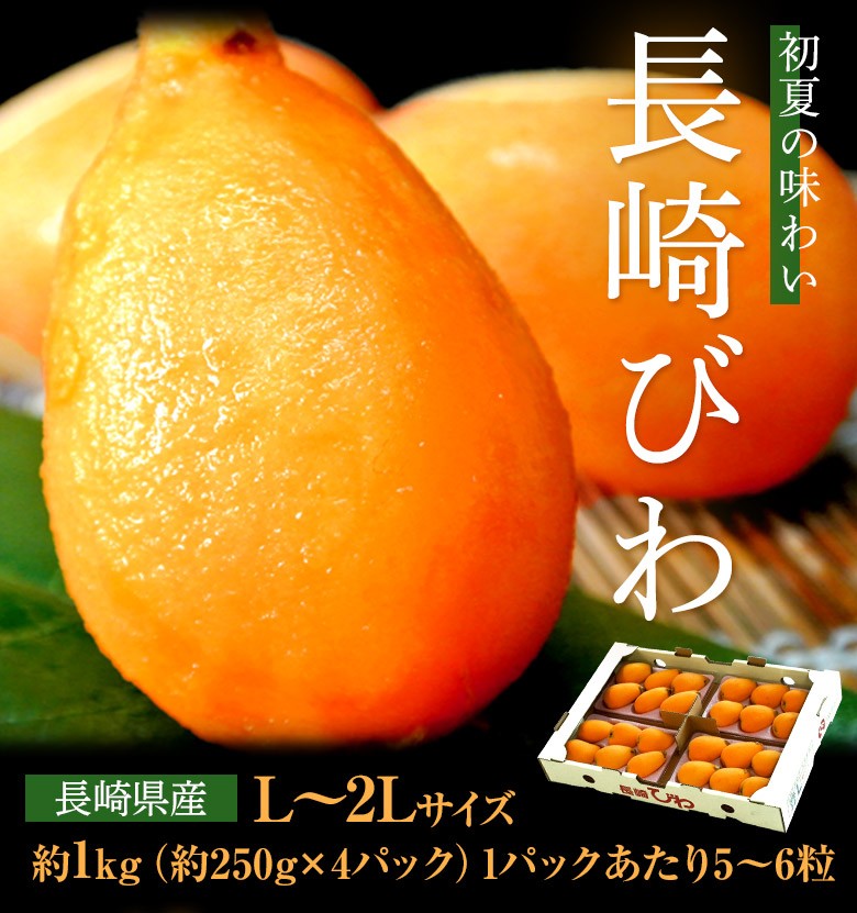 露地栽培 長崎びわ 長崎県産 L〜2L 約1kg (250g×4パック) 秀品 送料無料 びわ ビワ