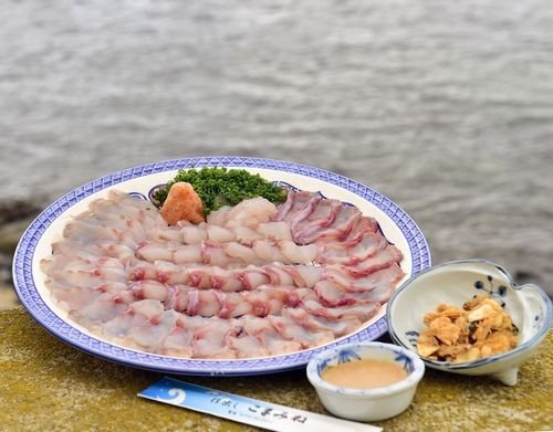 生きたまま水揚げされた大型鮟鱇の活け締め刺身。
