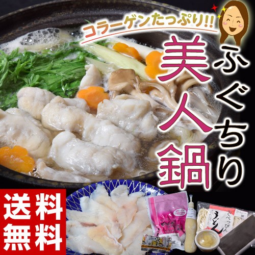 《送料無料》「ふぐちり美人鍋セット」2人前(ふぐスライス、ふぐしゃぶ皮、ふぐ皮入りうどん、豆乳鍋の素、ポン酢、生姜(塩入り)、昆布) ※冷凍 sea ○