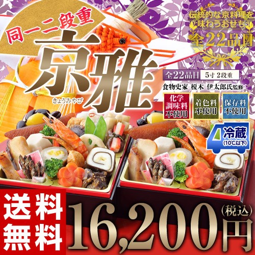 ≪送料無料≫伝統的な京料理を味わうおせち『京雅(きょうみやび)』5寸×2段 22品 ※冷蔵 ☆