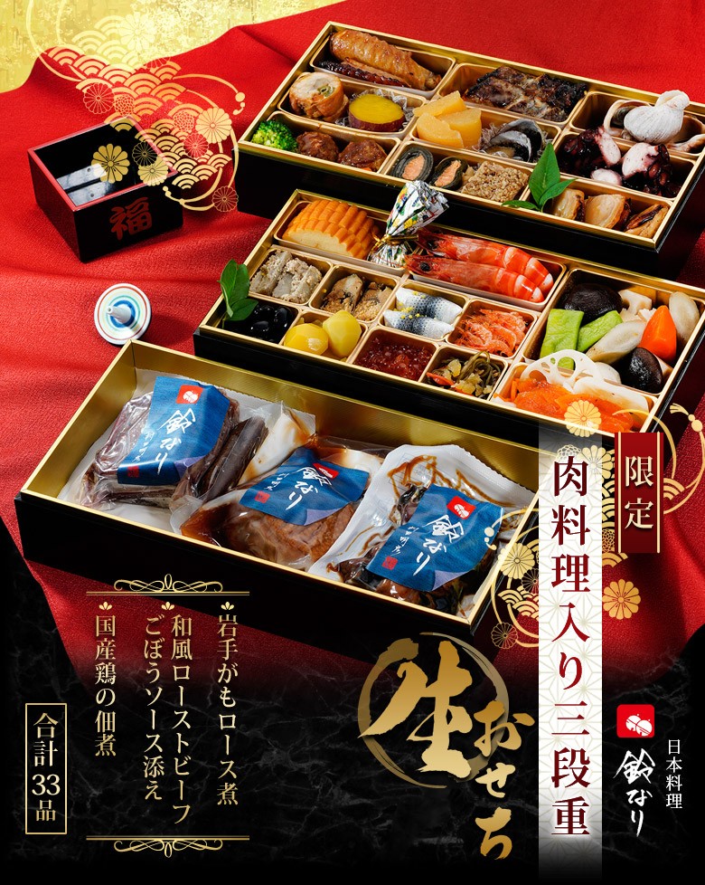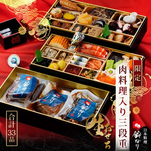 おせち 御節 お節 鈴なり 村田明彦 氏監修 生おせち 3段重 全33品目 冷蔵 年末 ご馳走 年越し グルメ 同梱不可 送料無料