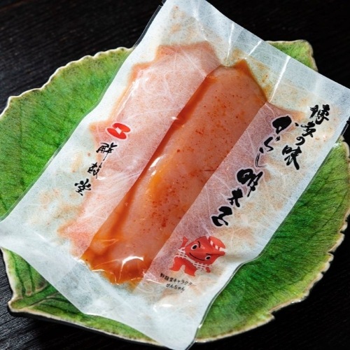 【原材料】すけそうだらの卵(アメリカ産)、米発酵調味液、食塩、たん白加水分解物、唐辛子、ぶどう糖、そうだかつおぶし粉末/調味料(アミノ酸、核酸、有機酸)甘味料(ソルビトール)、酸化防止剤(ビタミンC)、発色剤(亜硝酸Na)、酵素