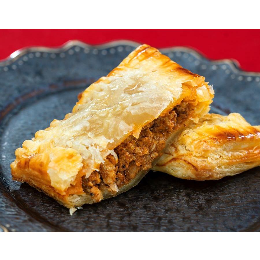 サクサクのパイ生地に、どろぶた100%のお肉をたっぷりで作った特製ミートソースを閉じ込めました。