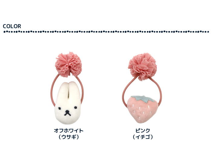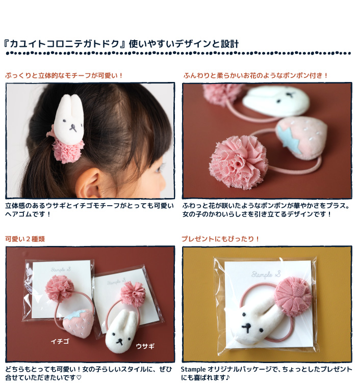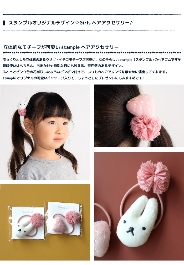 ぷっくりとした立体感のあるウサギ・イチゴモチーフが可愛い、女の子らしい stample(スタンプル) のヘアゴムです?