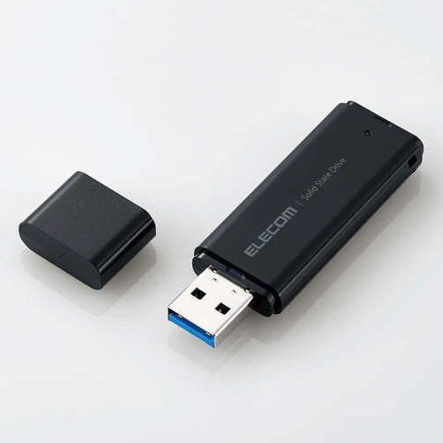 ELECOM エレコム キャップでUSBコネクターへのゴミやホコリなどをブロックできる 外付けポータブルSSD ▼容量:250GB ▼インターフェース:USB3.2 Gen1 ▼規格:スティック ▼最大読み込み速度:400MB/s ▼最大書き込み速度:380MB/s