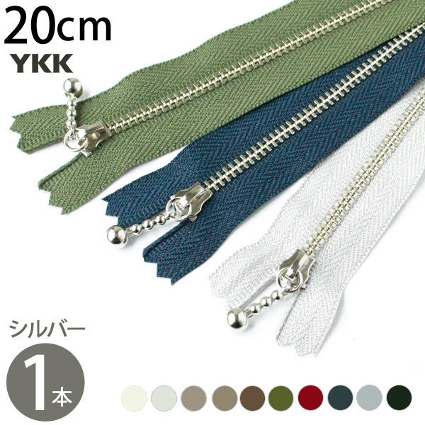 玉付 ファスナー20cm YKK シルバー 1本 金属 玉付ファスナー 玉付 ファスナー