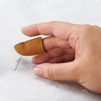 指のかたちにぴったりフィットした斬新な形状。トップからサイドまで、継ぎ目がない特殊縫製なので、好みの位置で使えるこれまでにない形の皮シンブルです。トップから腹にかけて、なだらかな曲線を描く形状なので、指先の丸みにしっくりとなじみます。