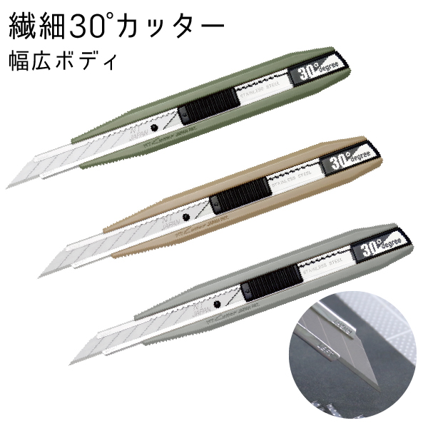 カッター 繊細30°カッター 幅広ボディ 左利き 切り絵 消しゴムハンコ 繊細作業