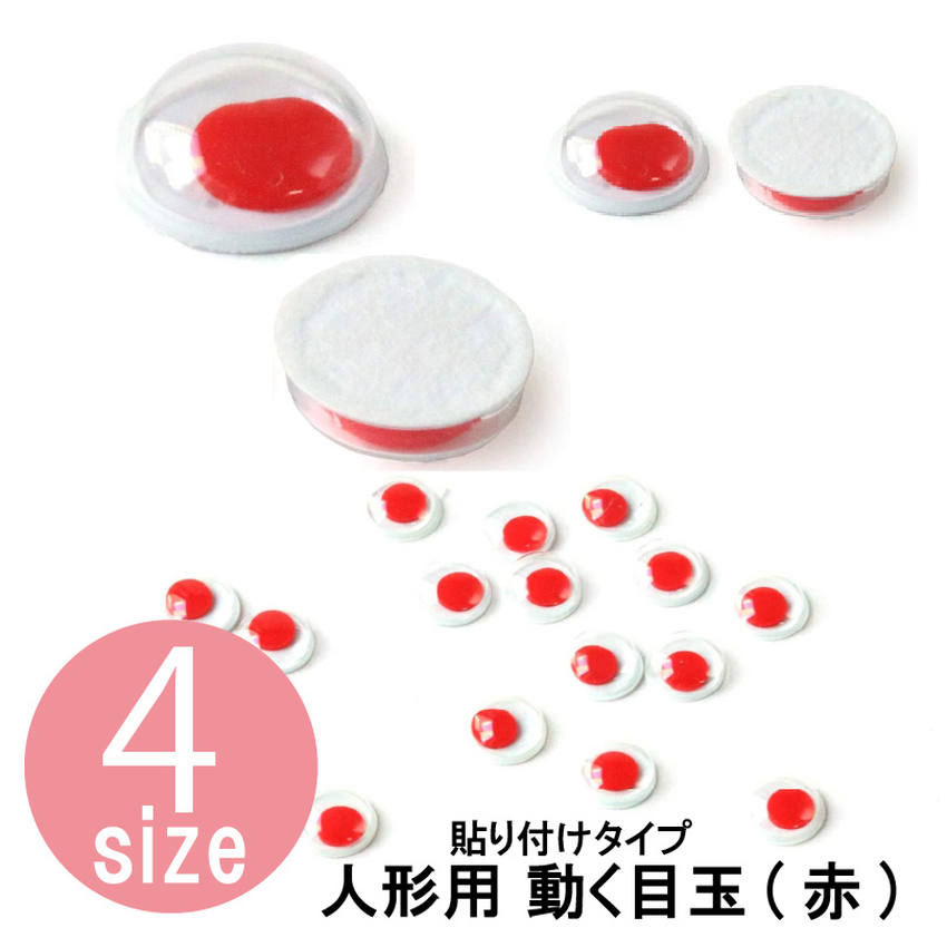 人形用の動く目玉 動眼 貼り付け 人形 赤 直径4〜8mm NBK