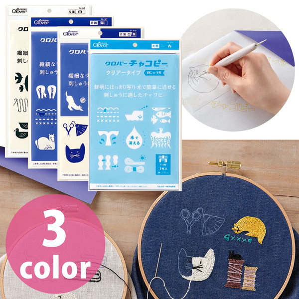 2.刺しゅうの図案に適した新色「紫」カラーのチャコピー3.刺しゅう用シリーズは白と紫の2色展開でほとんどの色の生地に対応します。