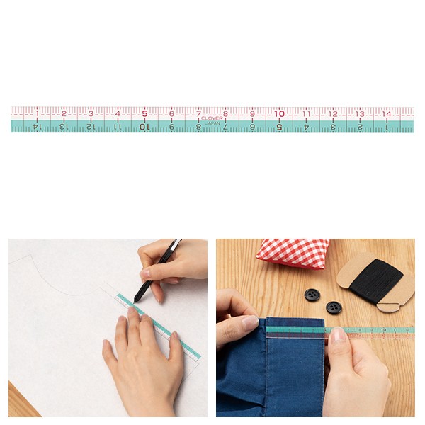 色柄の生地の上でも目盛が読み取りやすいグリーンゾーンがあり、端から始まる0起点目盛なので採寸にも便利です。